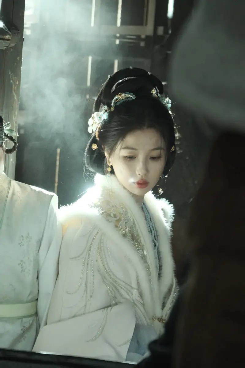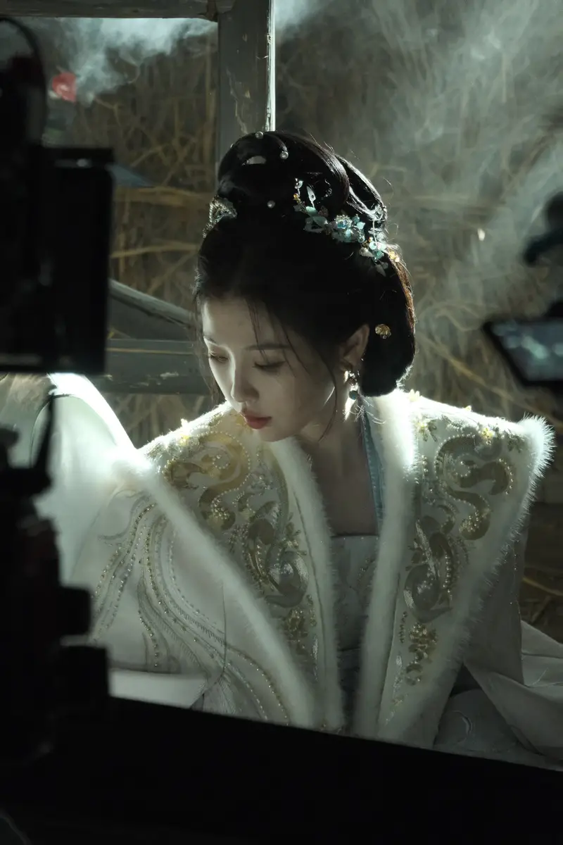 虞书欣穿白色襦裙端庄矜贵 双手托腮表情灵动可人