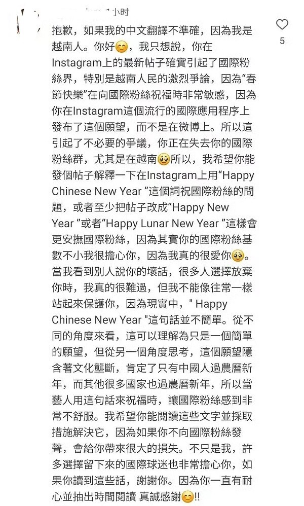 梓渝发了ChineseNewYear被越南网友冲了梓渝HappyChin