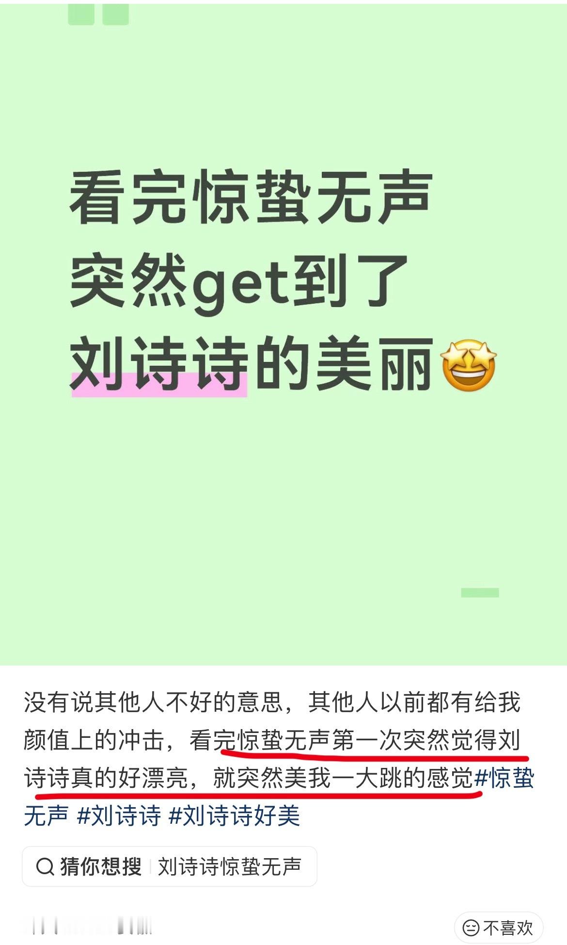 看过刘诗诗后,眼光变高,再看其他演员,不是气质不行,身材,头肩比不行,就是颜值不