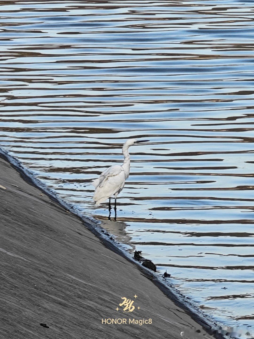 清晨的滏阳河,太阳才刚刚升起,河面波光粼粼,白鹭在岸边休闲的散步,为捕鱼做准备自然风光太阳照常升起随手拍自然春节摄影大赛荣耀magic8滏阳河邯郸文旅 邯郸·黑龙洞
