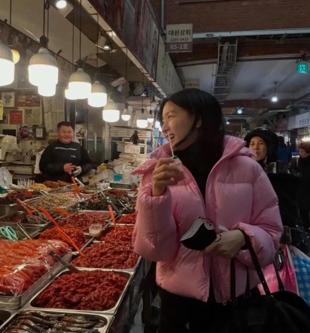 55岁李英爱逛韩国传统市场,她一个人自由自在逛菜市场,她的穿衣打扮朴素,但真人非常漂亮,她穿着粉红短款羽绒服,留着一头棕直长发,皮肤紧致有光泽,保养得好年轻,试穿冬北中式花棉袄背心,在平价店买了花棉袄,看起来很有气质,品尝传统美食真的好接地气啊。