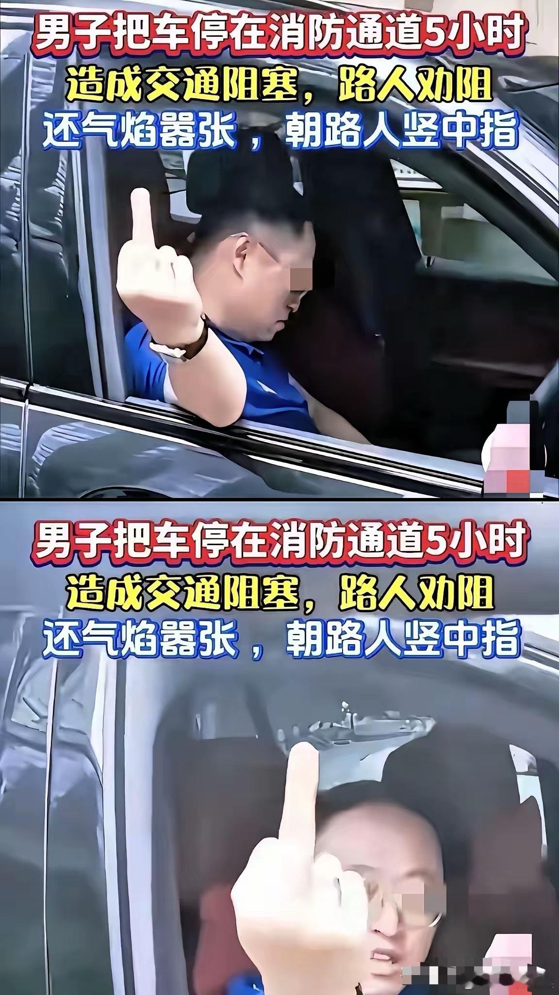 占消防通道5小时还嚣张竖中指?这种自私又蛮横的人,就该让他为自己的行为付出代价!大家觉得该怎么治这种人?