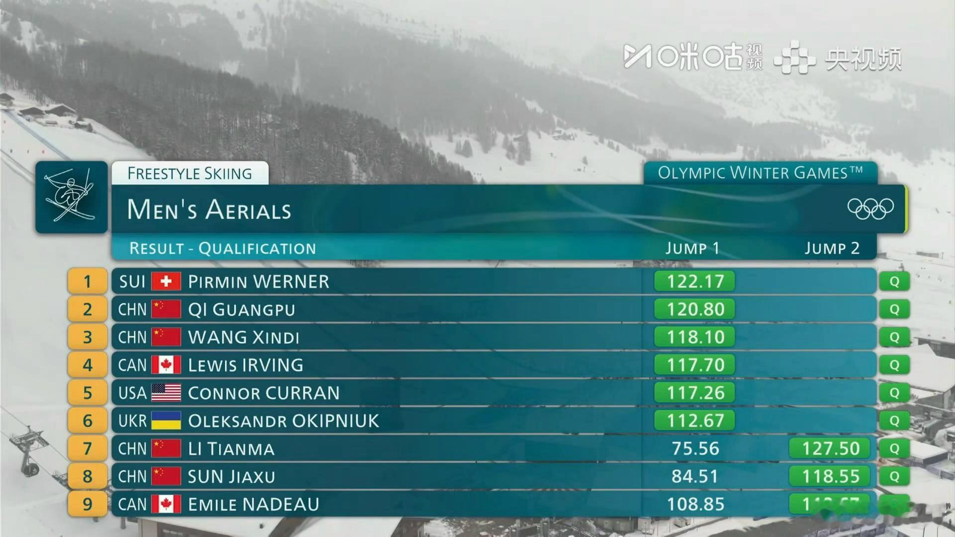 齐广璞率中国4人晋级决赛 米兰冬奥会自由式滑雪男子空中技巧预赛第二轮,李天马拿下127.50分、孙佳旭118.55分,顶住压力强势晋级。加上首轮直通的齐广璞、王心迪,中国队四人全员挺进决赛!老将稳、小将拼,团魂拉满,实力碾压晋级。今晚决赛,中国空中技巧男团全力冲金,期待再创辉煌!v观冬奥会 | 全民聊冬奥