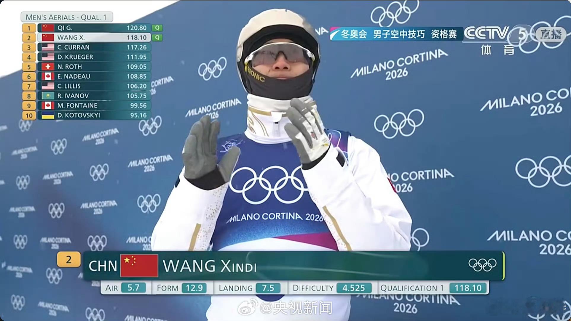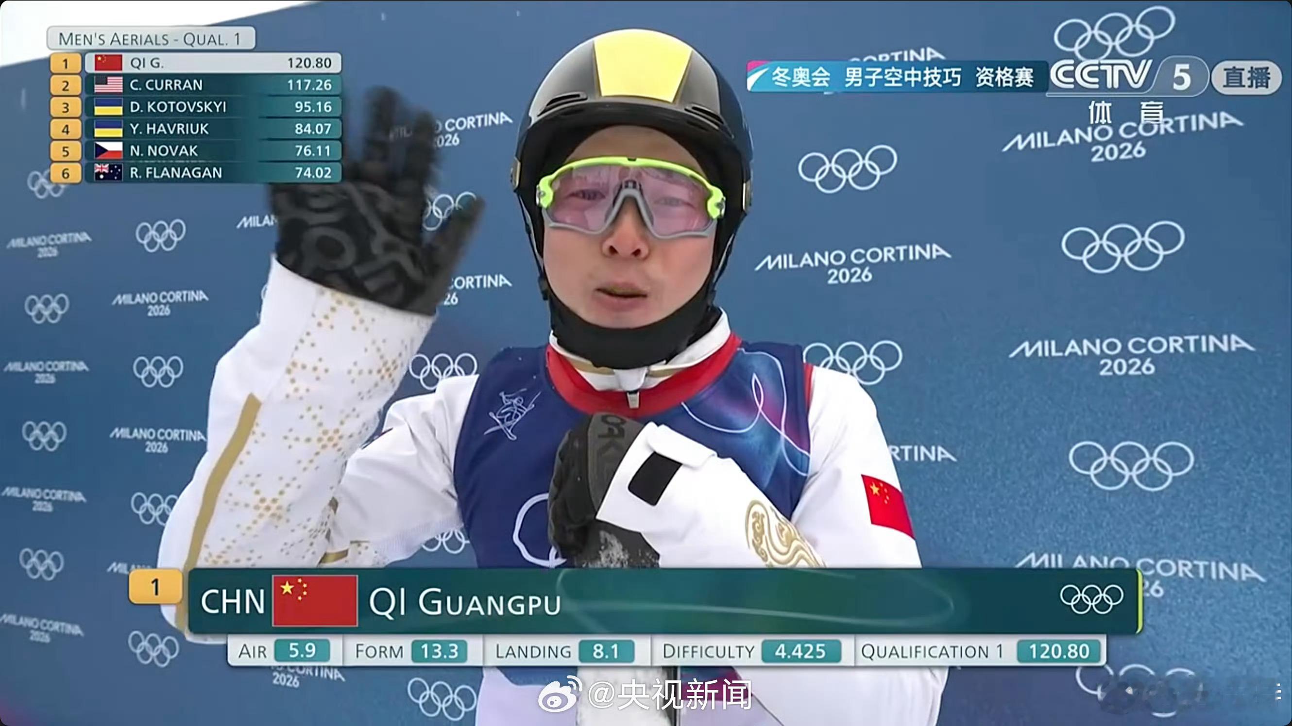 齐广璞王心迪晋级决赛 米兰冬奥会自由式滑雪男子空中技巧预赛首轮,齐广璞120.80分、王心迪118.10分,包揽前两名强势直通决赛!v观冬奥会 | 全民聊冬奥