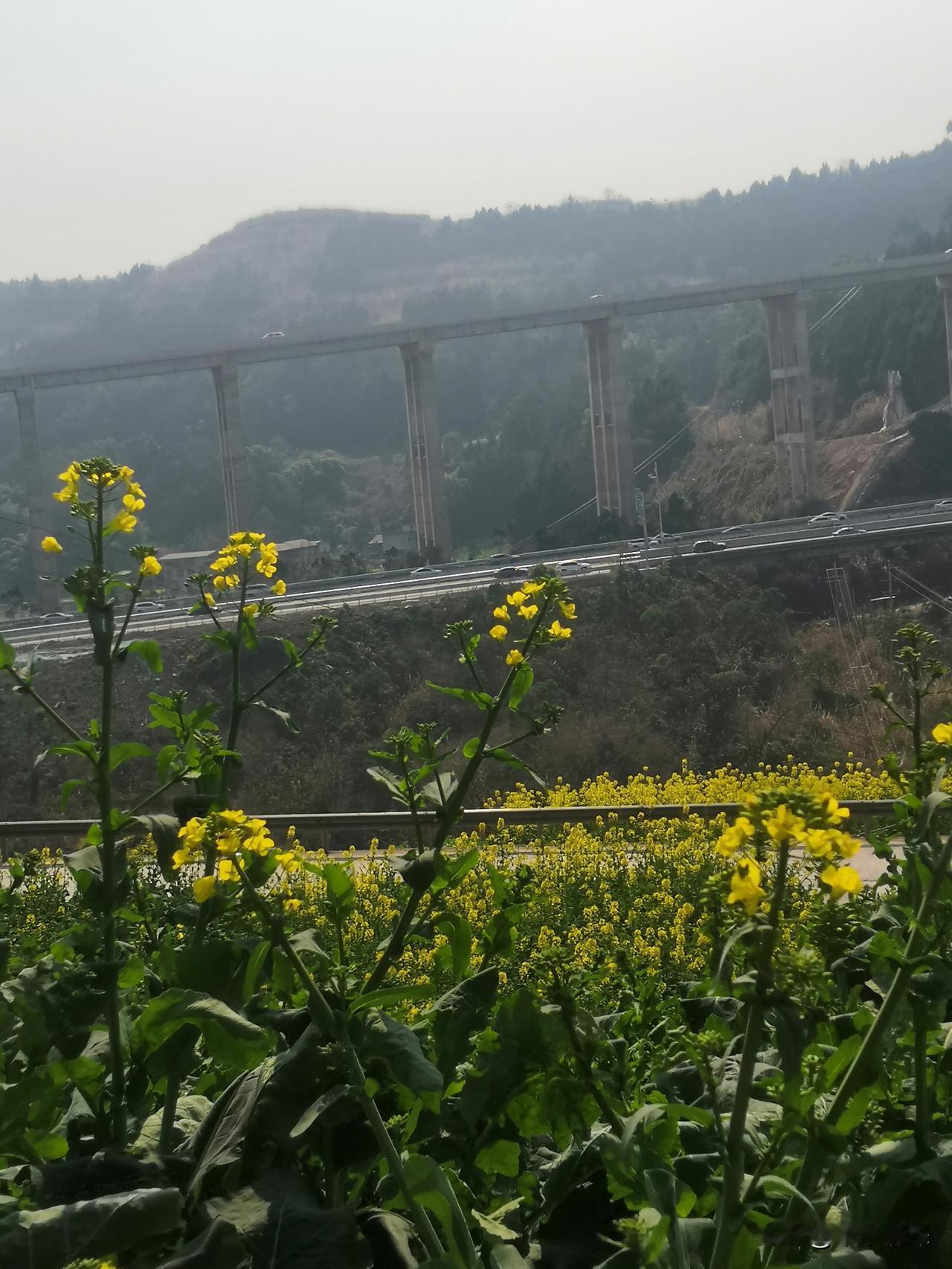 有高架桥上的车辆也在不停的奔跑着,不知道他们去往何方,但始终相信有目的地的,面前下面是金黄色的油菜,也在春日的暖阳中,油菜显得格外耀眼,这就是家乡的味道,这就是家乡的魅力。