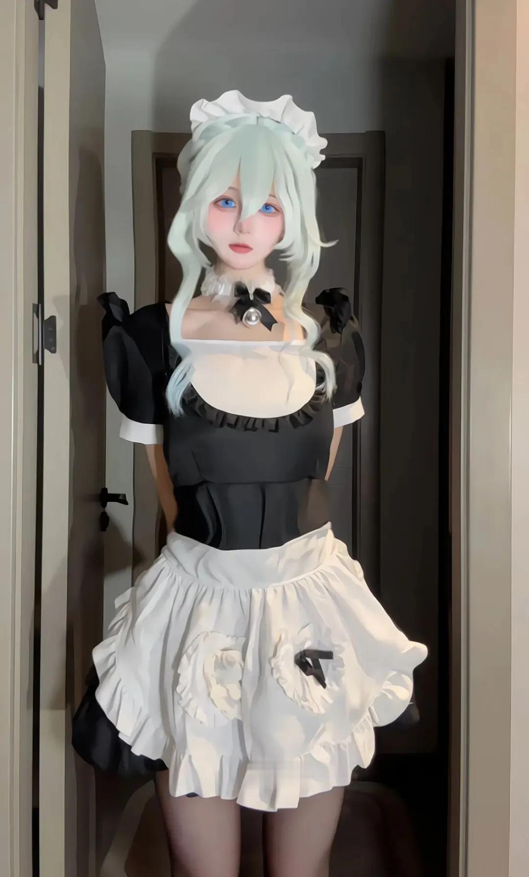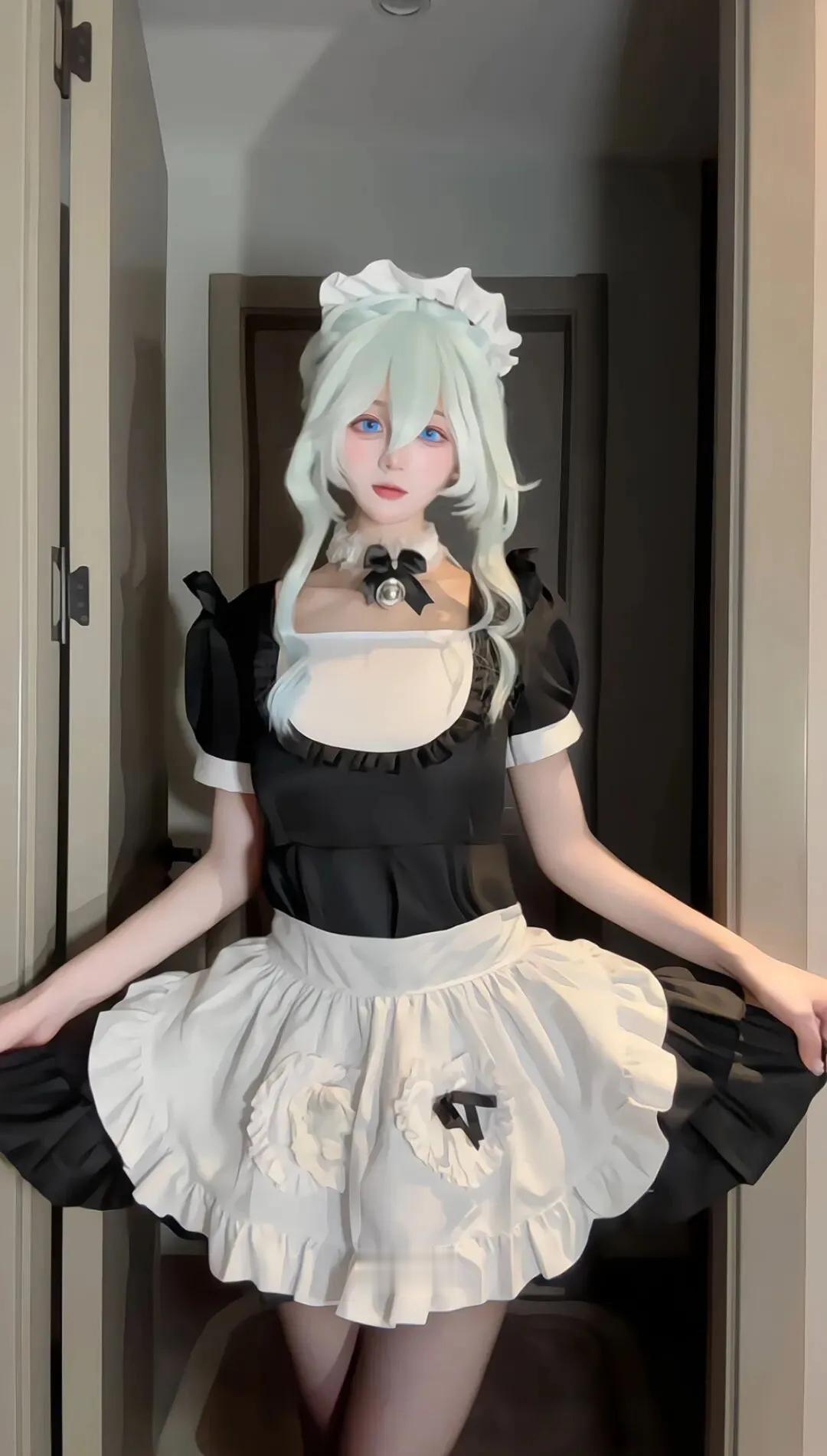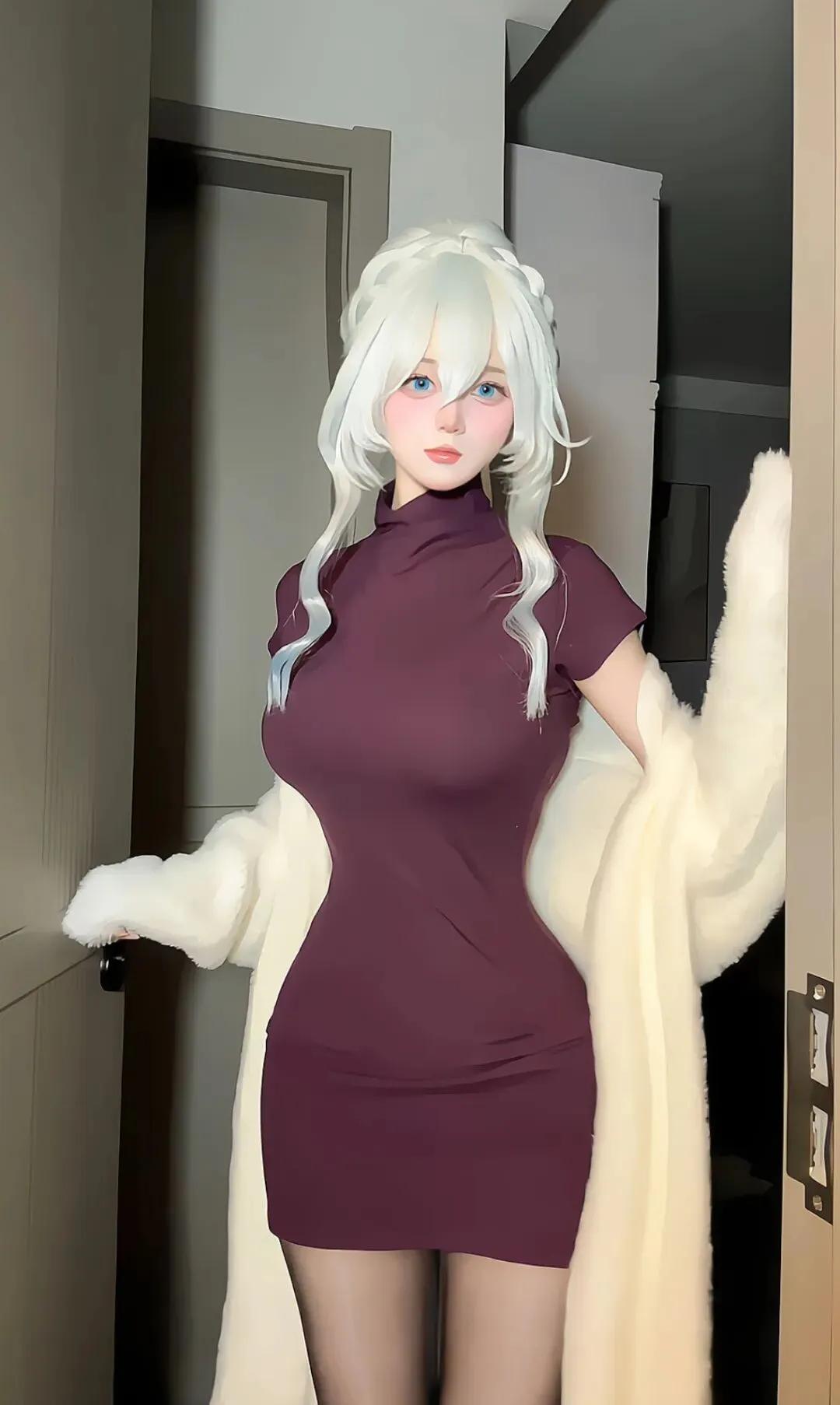 优雅白发少女,复古酒红色连衣裙,毛绒外套,尽显时尚与神秘。