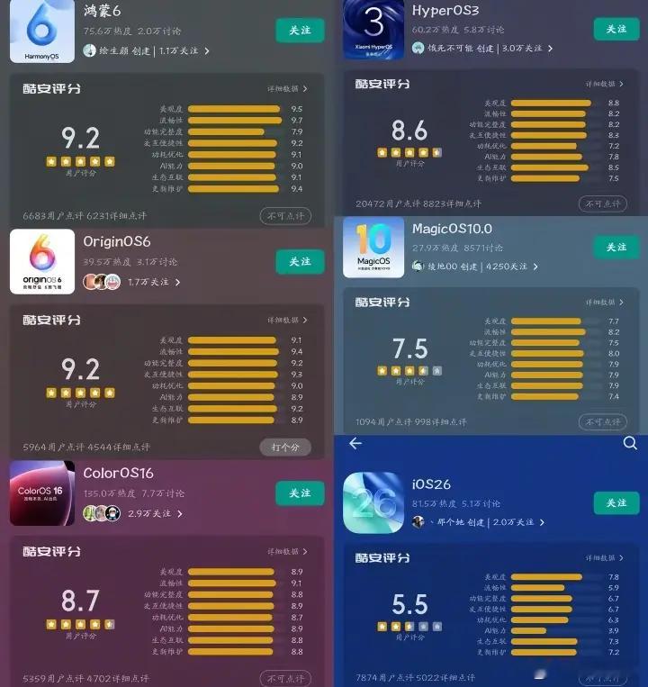 各品牌手机操作系统排名,鸿蒙遥遥领先,苹果iOS这么渣了吗?