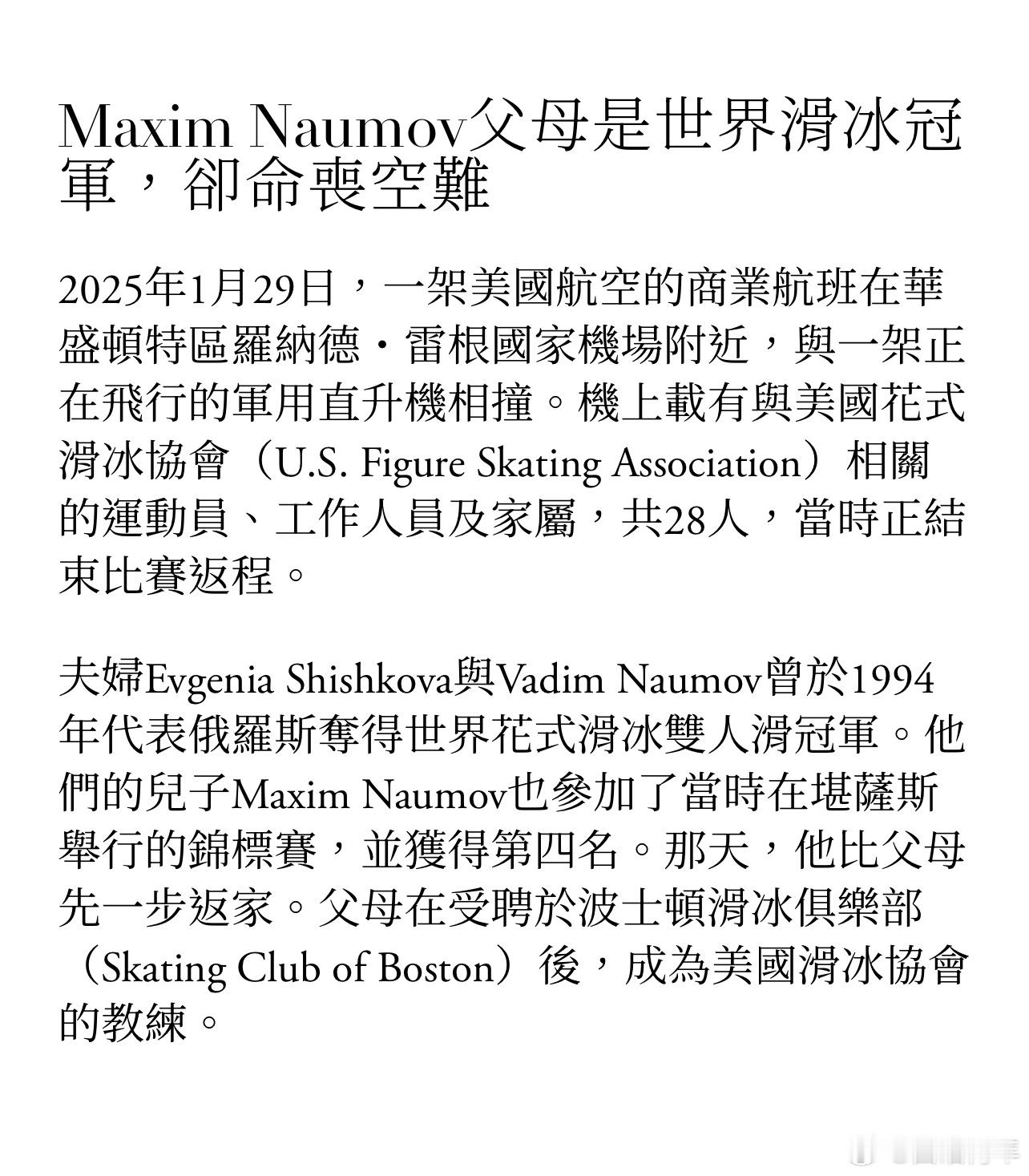 他的父母曾是花样滑冰世界冠军。从小到大,他一直与父母一同滑冰;他坦言,在双亲不幸离世后的那几周,他曾一度以为自己再也不会踏上冰场。他回忆说,过去与父母几乎每天都会谈到奥运,一年又一年地反覆讨论。