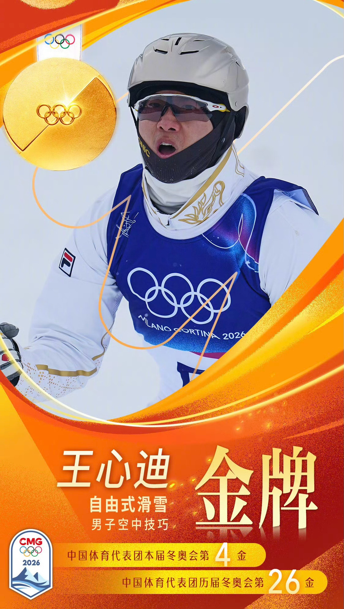 王心迪拿到2026米兰冬奥会自由式滑雪男子空中技巧决赛金牌🏅,为中国代表团拿下第四枚金牌。至此,王心迪&徐梦桃夫妇分别拿下本届该项目男子和女子冠军,恭喜王心迪,也再次恭喜这对超强奥运金牌夫妻档🐮