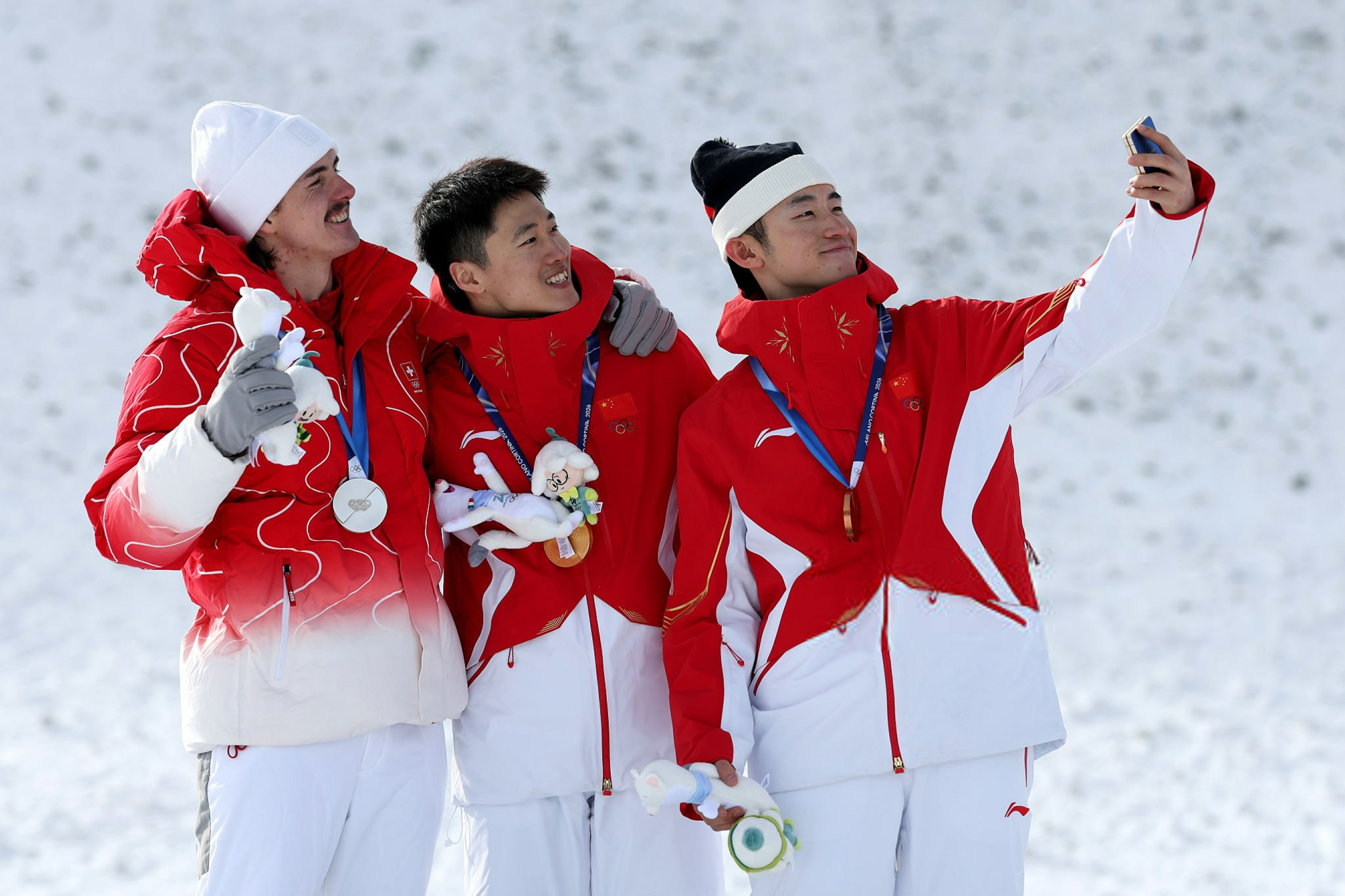 王心迪金牌李天马铜牌颁奖现场美图大赏!恭喜王心迪在米兰冬奥会自由式滑雪男子空中技巧决赛夺金!为中国队收获本届冬奥会第4枚金牌!也恭喜李天马获得铜牌!!!中国队米兰第4金值得一提的是,王心迪爱妻徐梦桃前几天拿下了女子空中技巧金牌,这样夫妻俩包揽了男女金牌!而且中国队均获得了男女项目的金牌和铜牌!王心迪徐梦桃 金牌夫妻