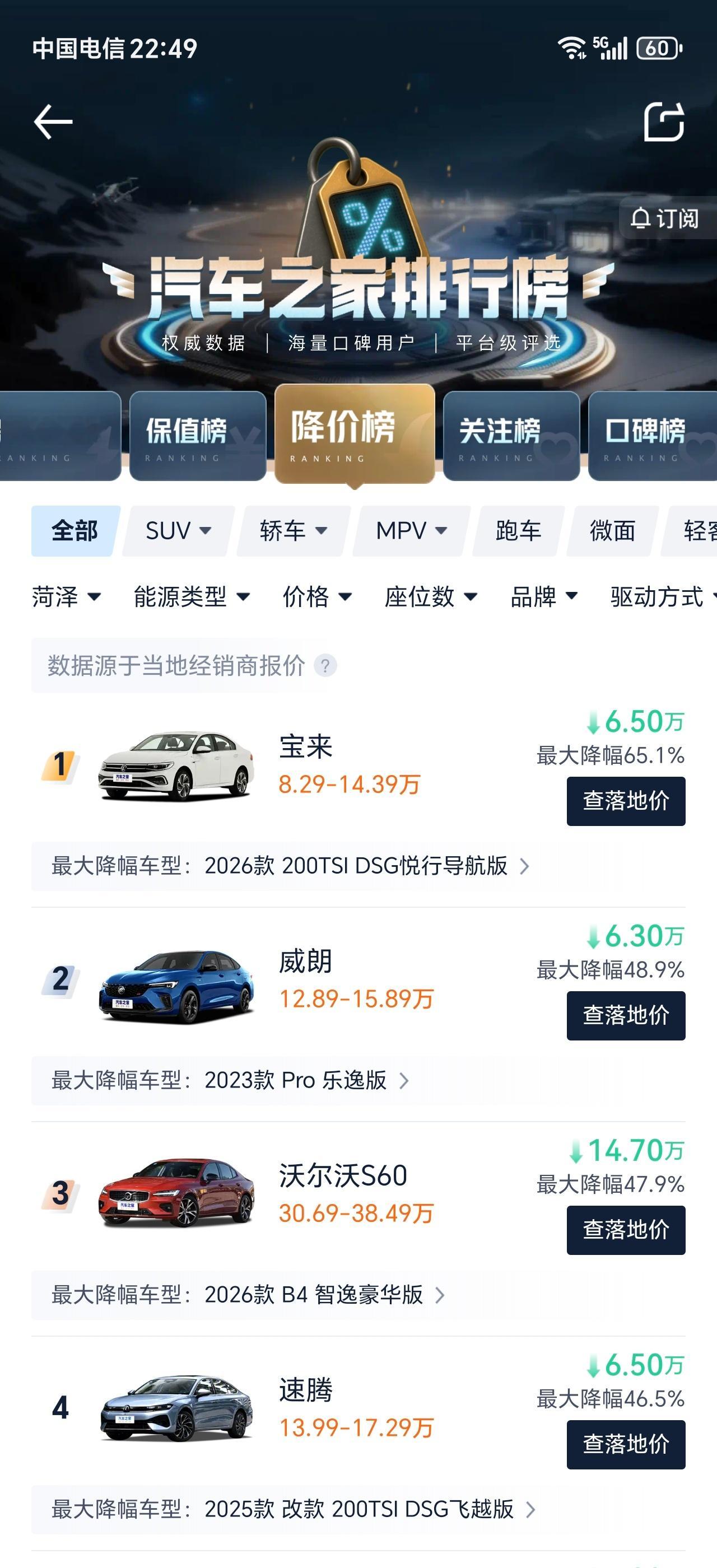 宝来最高降幅65.1%,这降价幅度确实比较大。