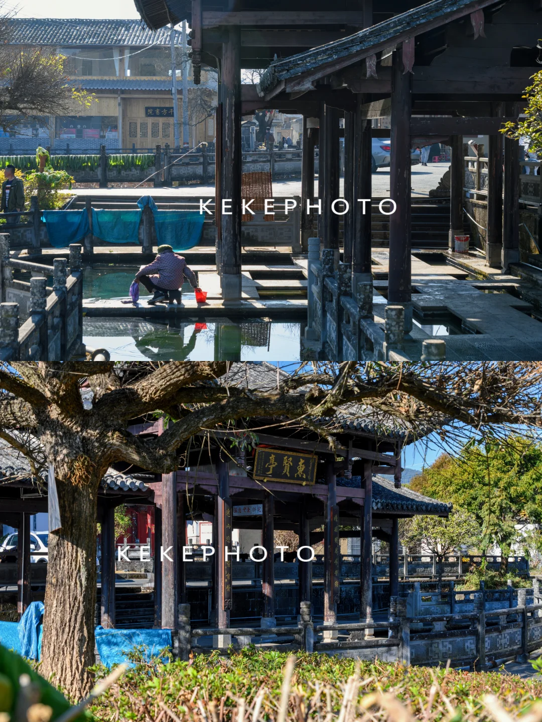 4.作为古“西南丝绸之路”的必经之地,以马帮运输的商贾重镇,一代一代的董官村男人,像和顺的男人们一样跟着马帮的驼铃声出国“走夷方”,女人们则留在了家乡,孝敬父母,抚育儿女。为了呵护家中的女人在洗东西时不受风吹日晒之苦,便在河上铺石修亭,小河上便有了洗衣亭。洗衣亭,是为生活奔忙远走他乡的男人对自己女人最朴素的情感印记。