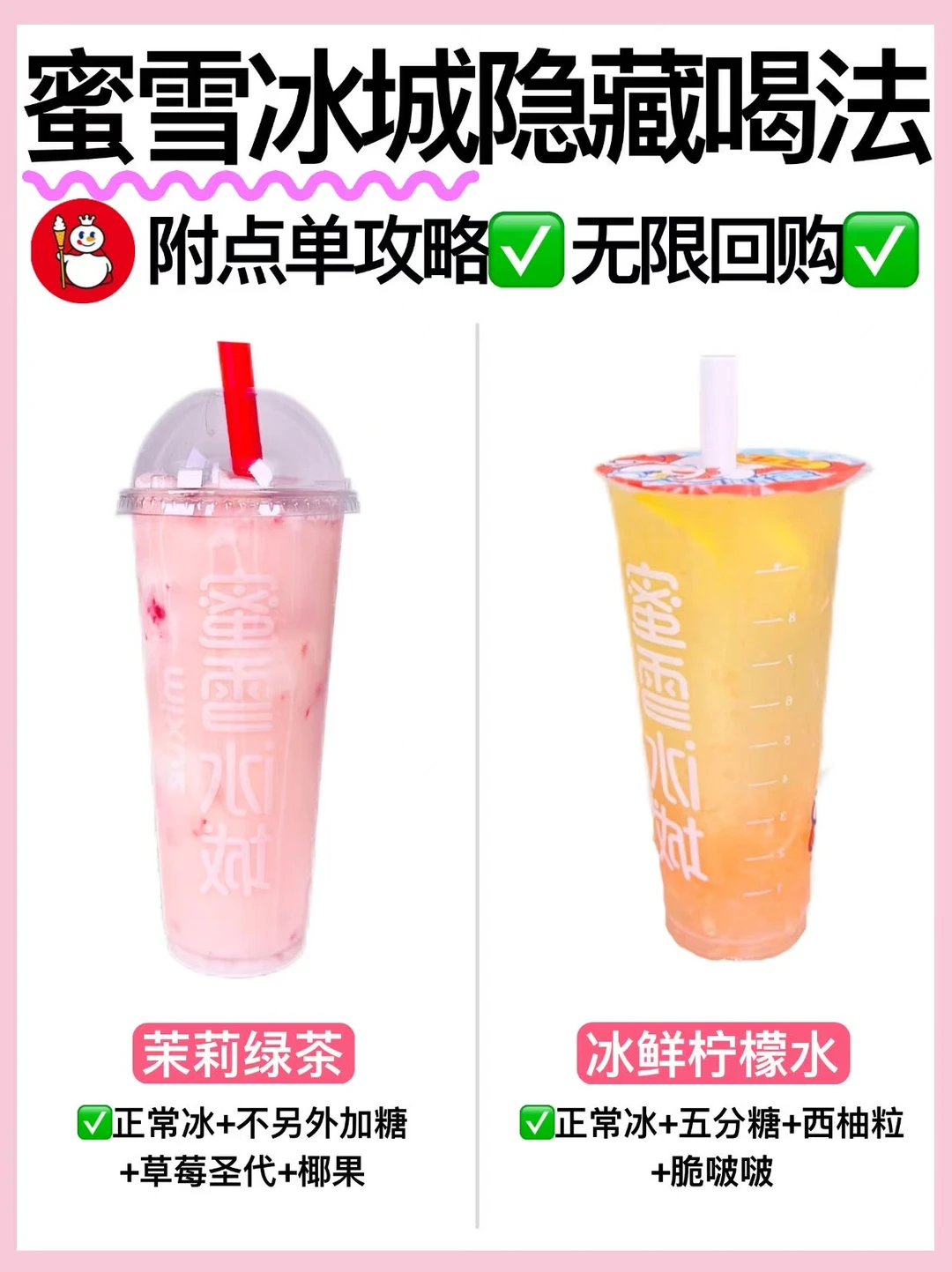 🧋雪王女孩看过来!喝腻了常规点单的快试试这些!给你们整理了一期蜜雪冰城隐藏喝法🔥附点单攻略‼️这几杯没对手✅亲测好喝不踩雷🔥喜欢的姐妹快收藏~