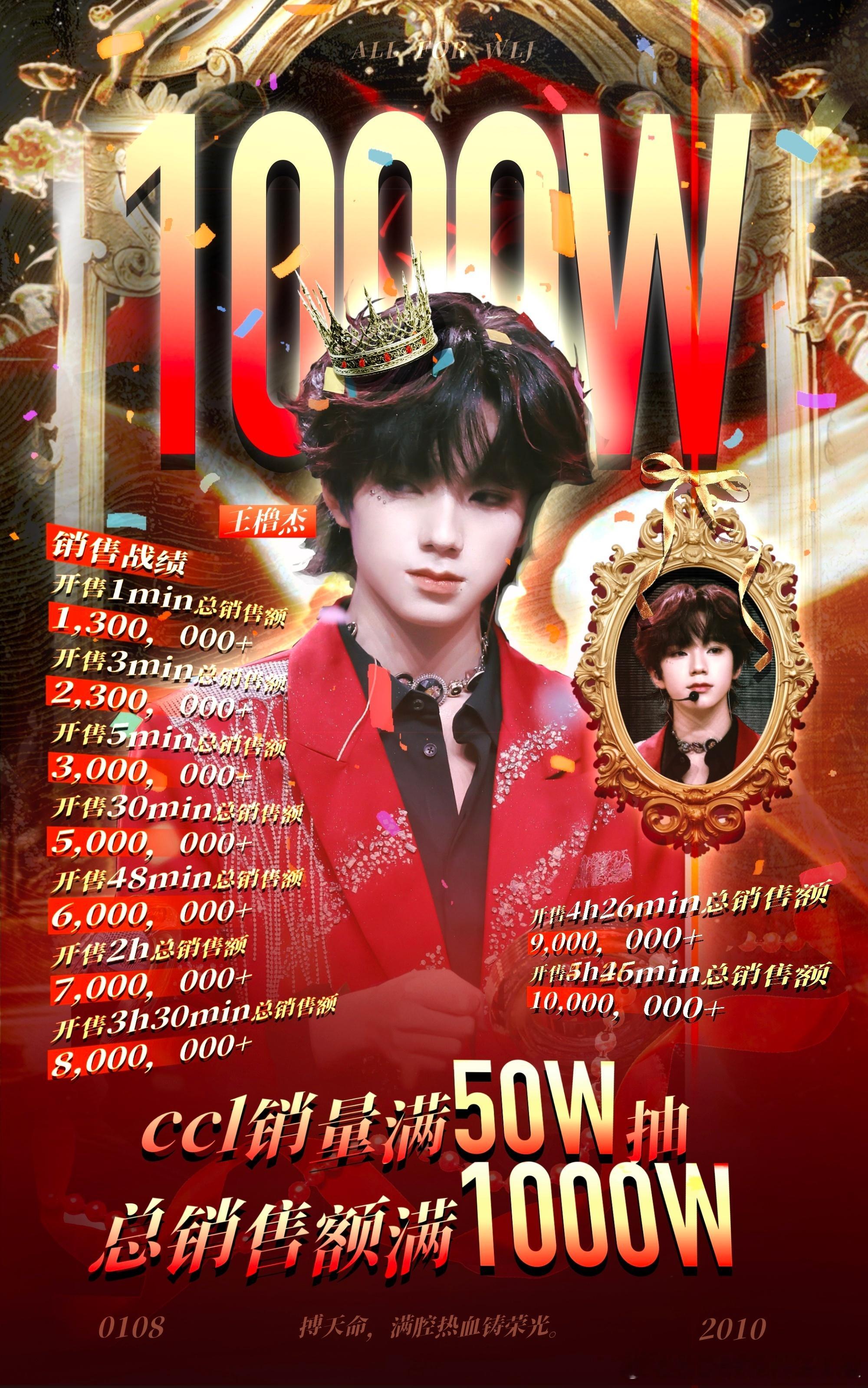 王橹杰最近的成绩一览,内娱又一里程碑!ccl开售5小时45分破千万,ccl销量50万+,创下内娱最快破千万的新纪录!从开售就一路领跑,每一个时间节点都在创造历史,四代断层TOP的人气和实力!王橹杰 四永一 🎊 王橹杰 四代唯一TOP