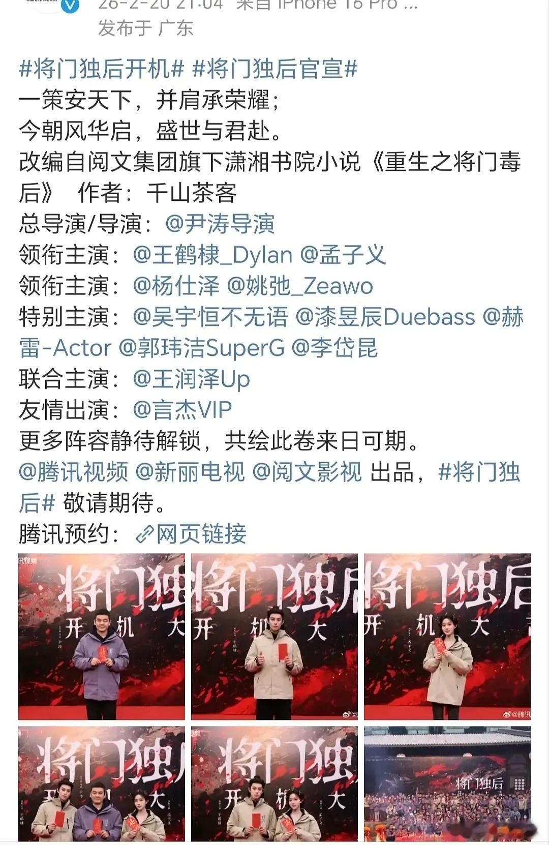 《将门独后》“天崩开局”?选角争议引热议《将门独后》官宣开机,本应是书粉狂欢