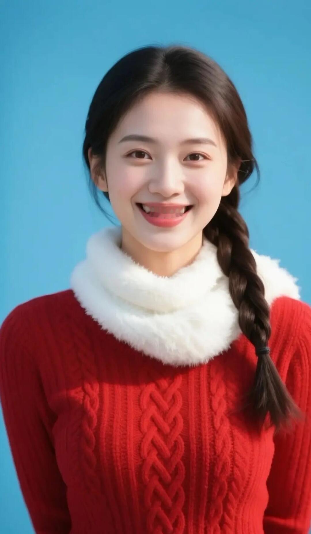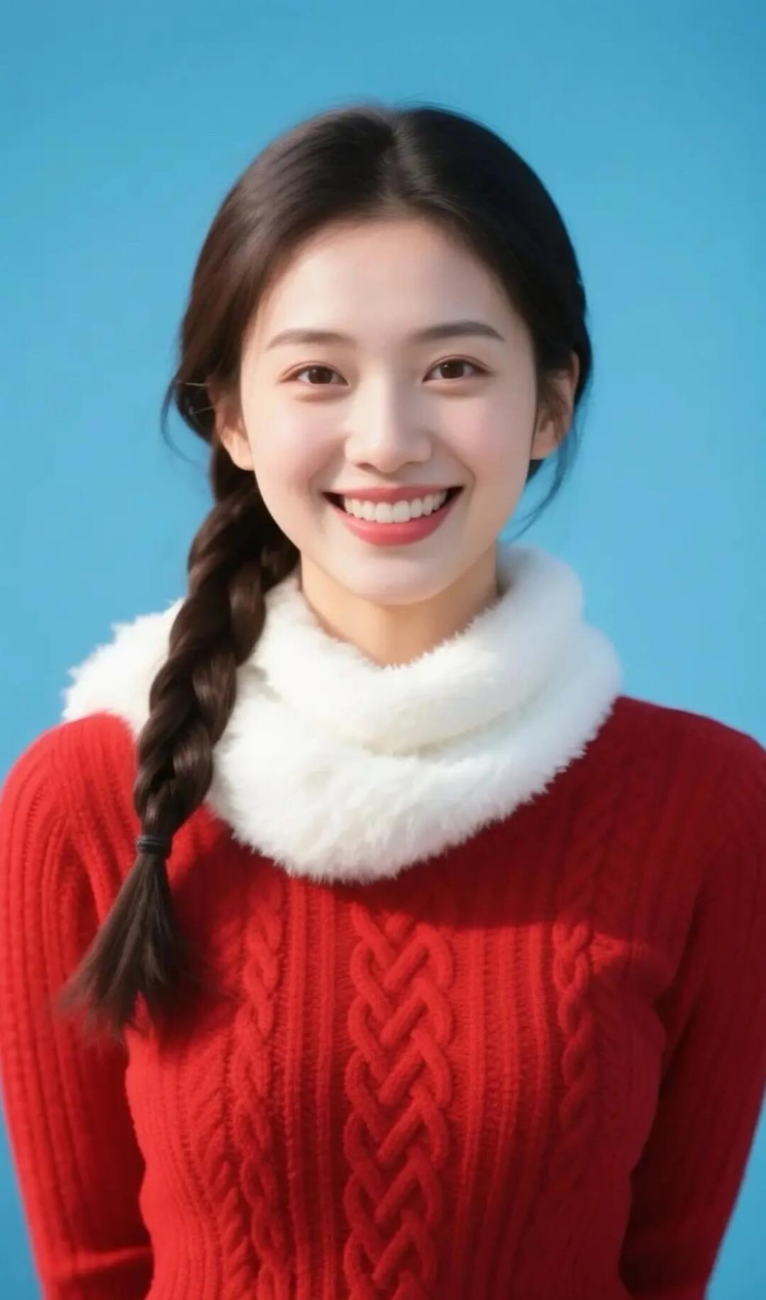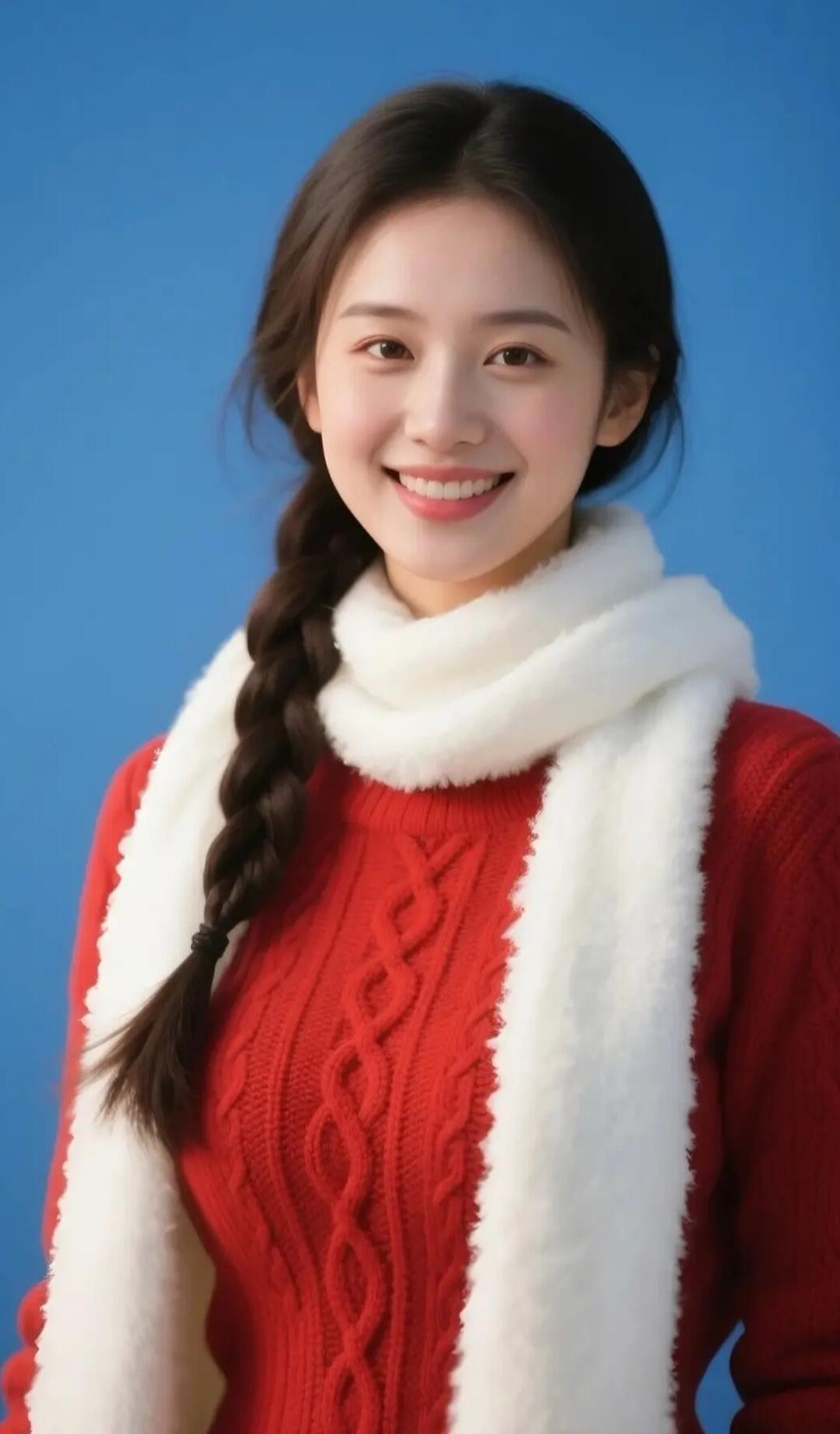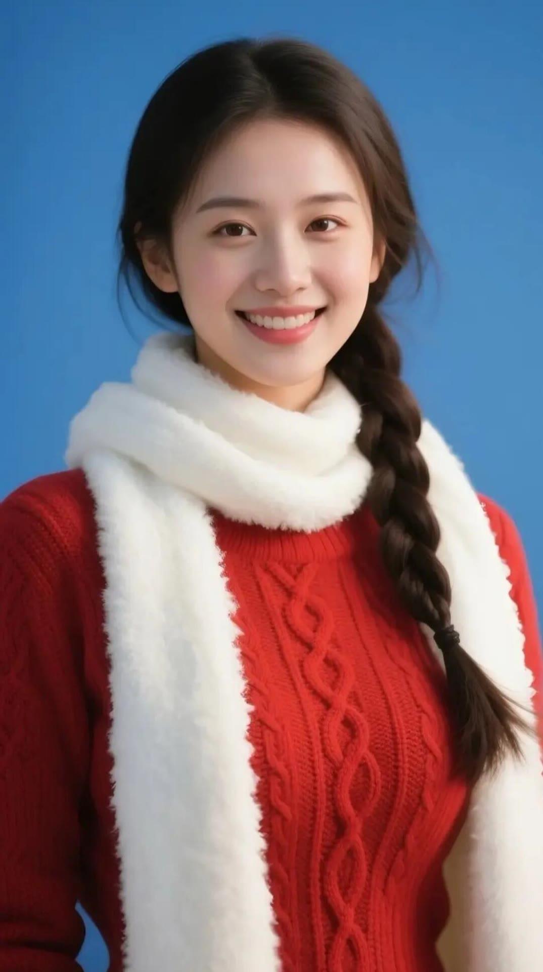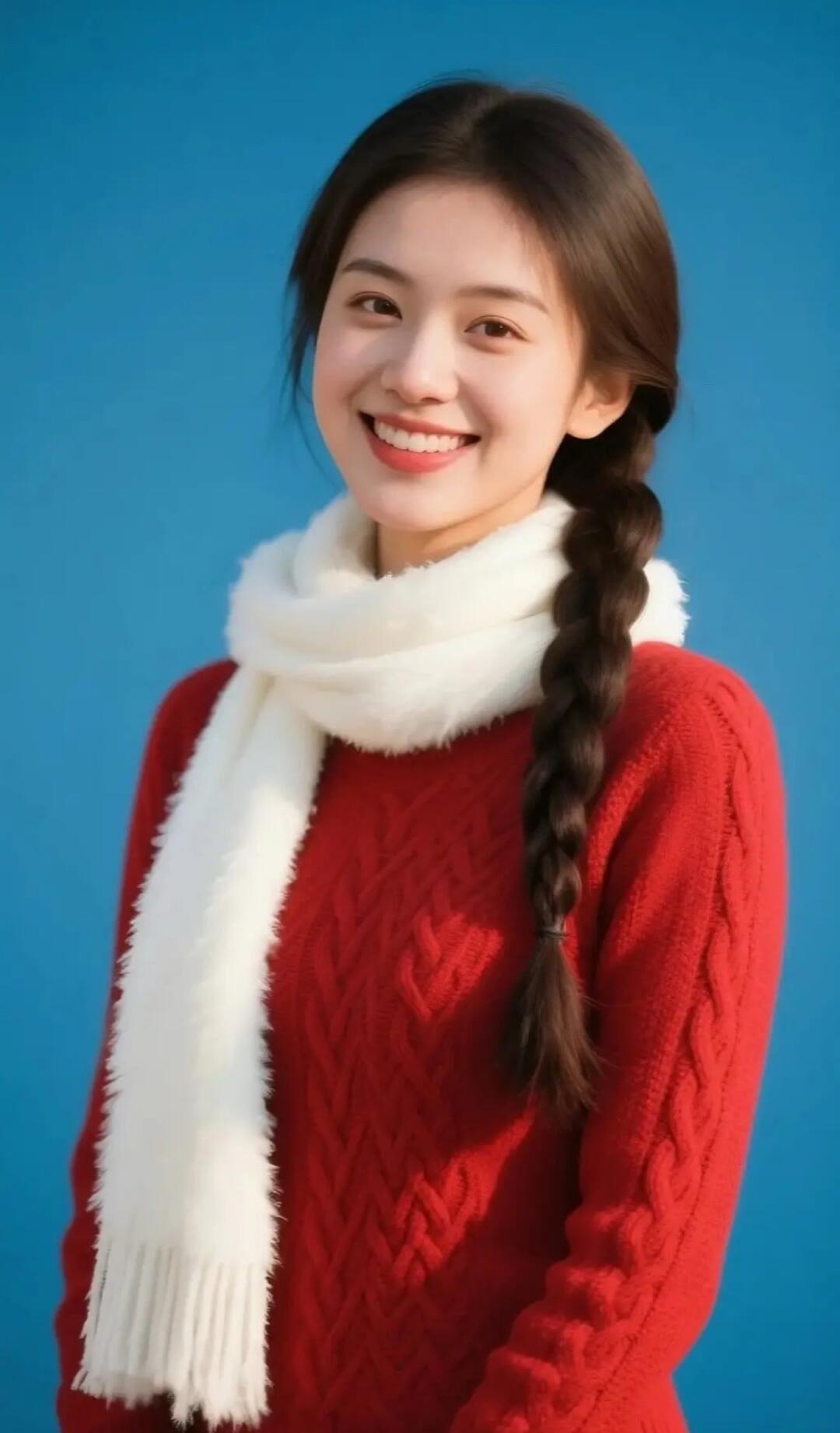 冬日暖阳下的甜美笑容,红衣白围巾,温暖如初。🌞💖