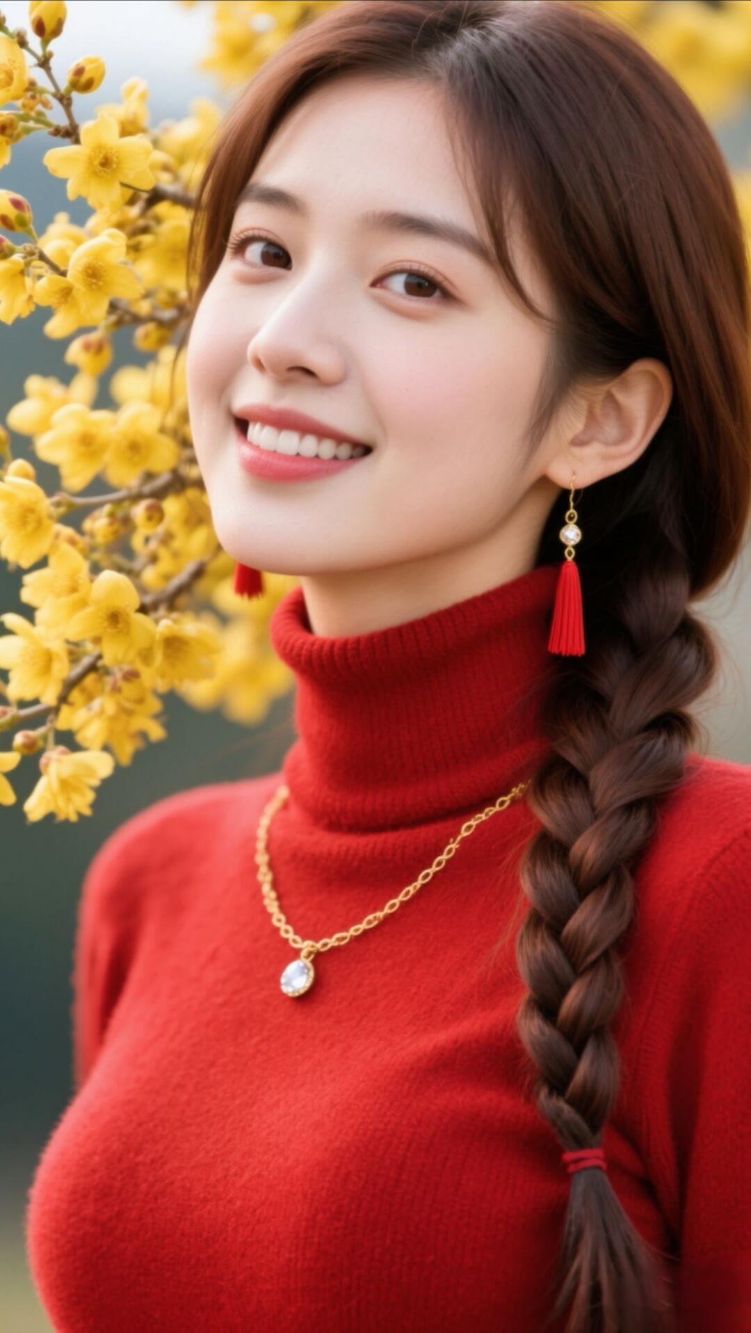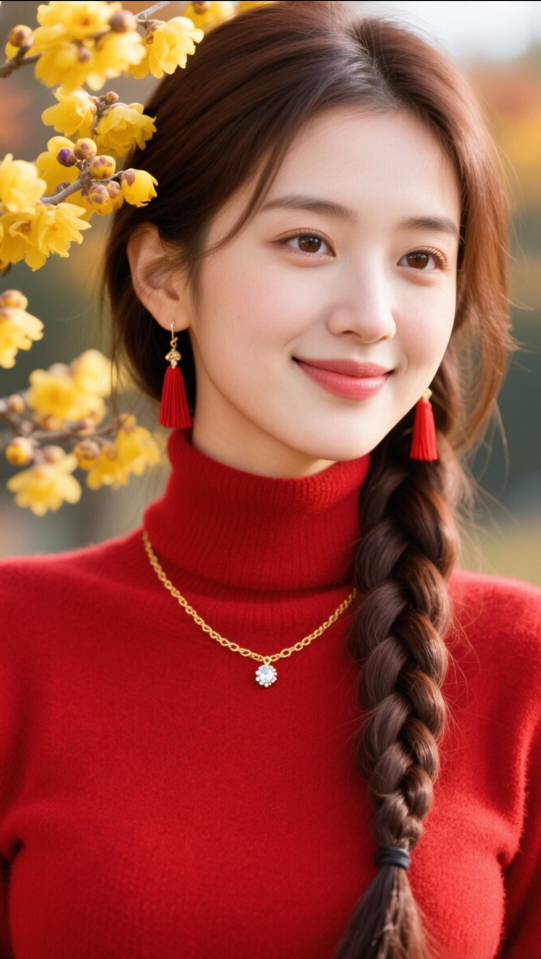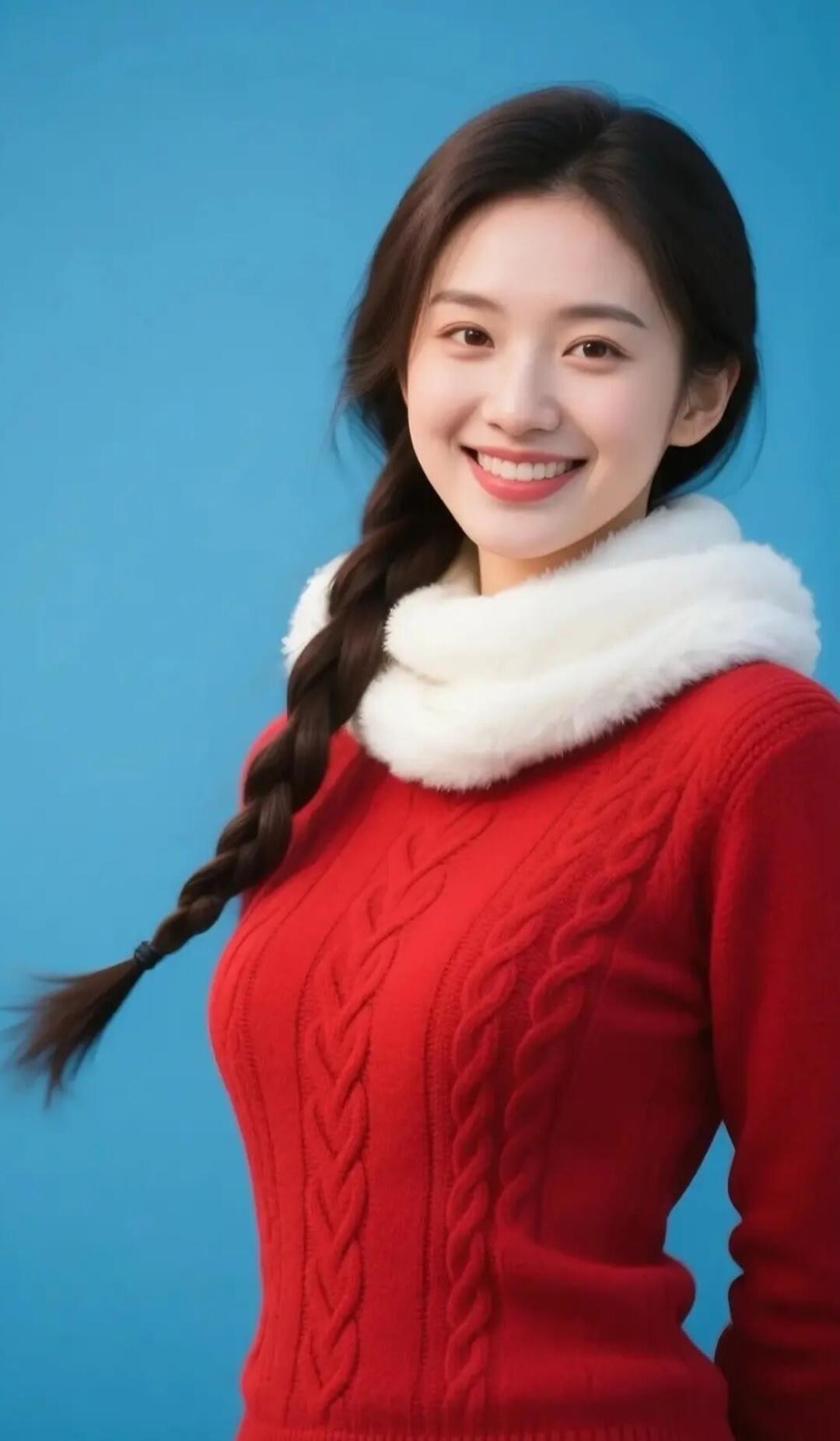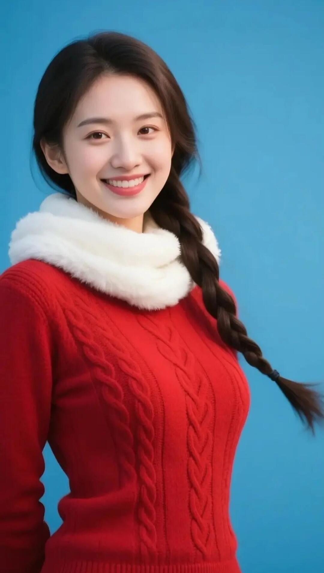 冬日暖阳下的甜美笑容,红衣白围巾,温暖如初。🌞💖