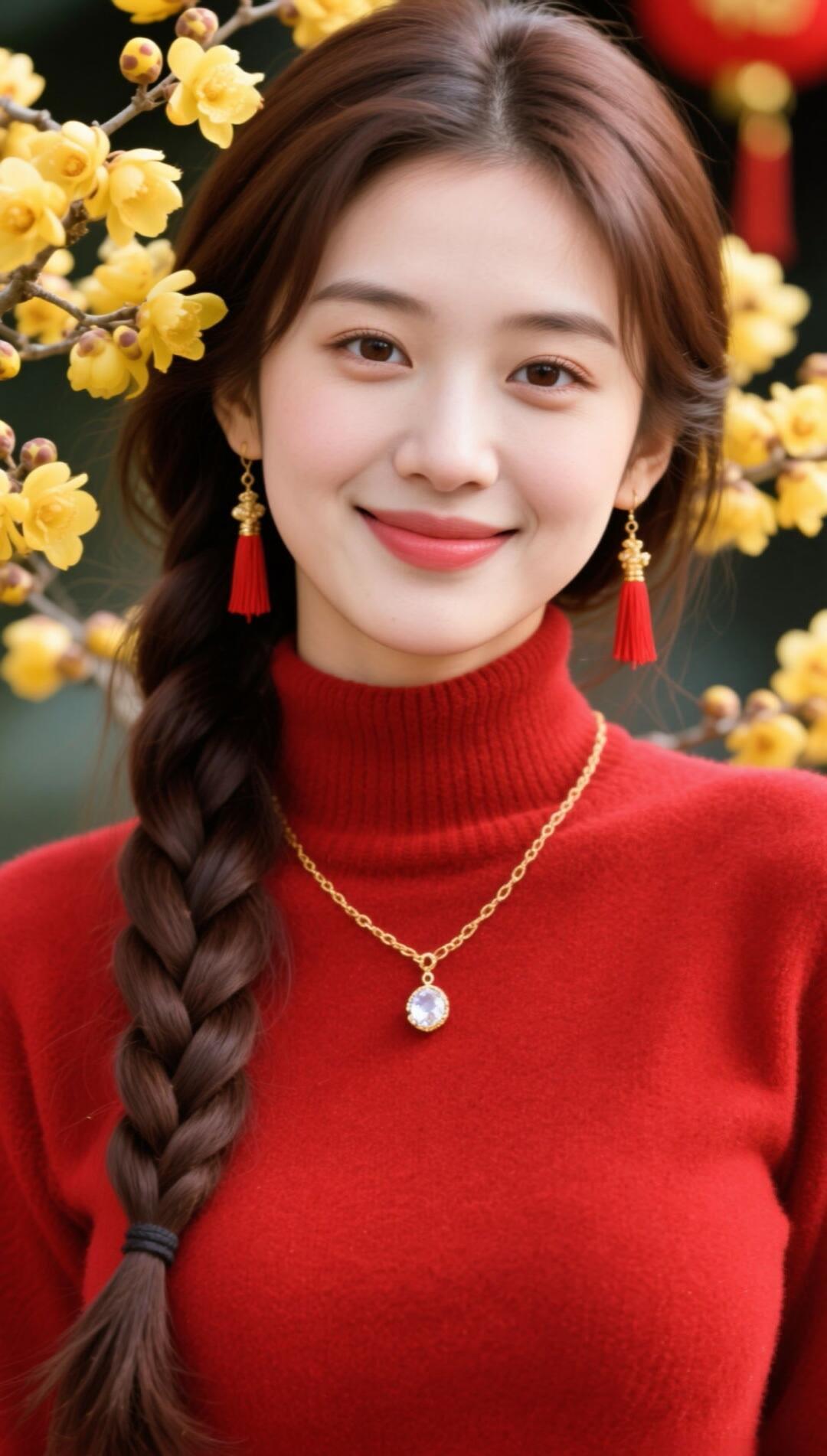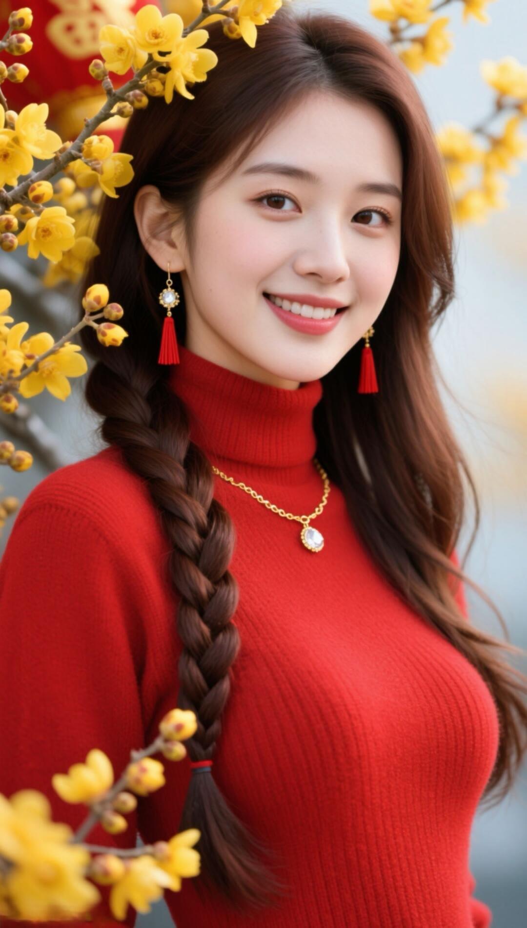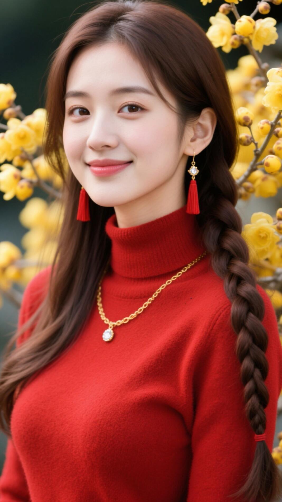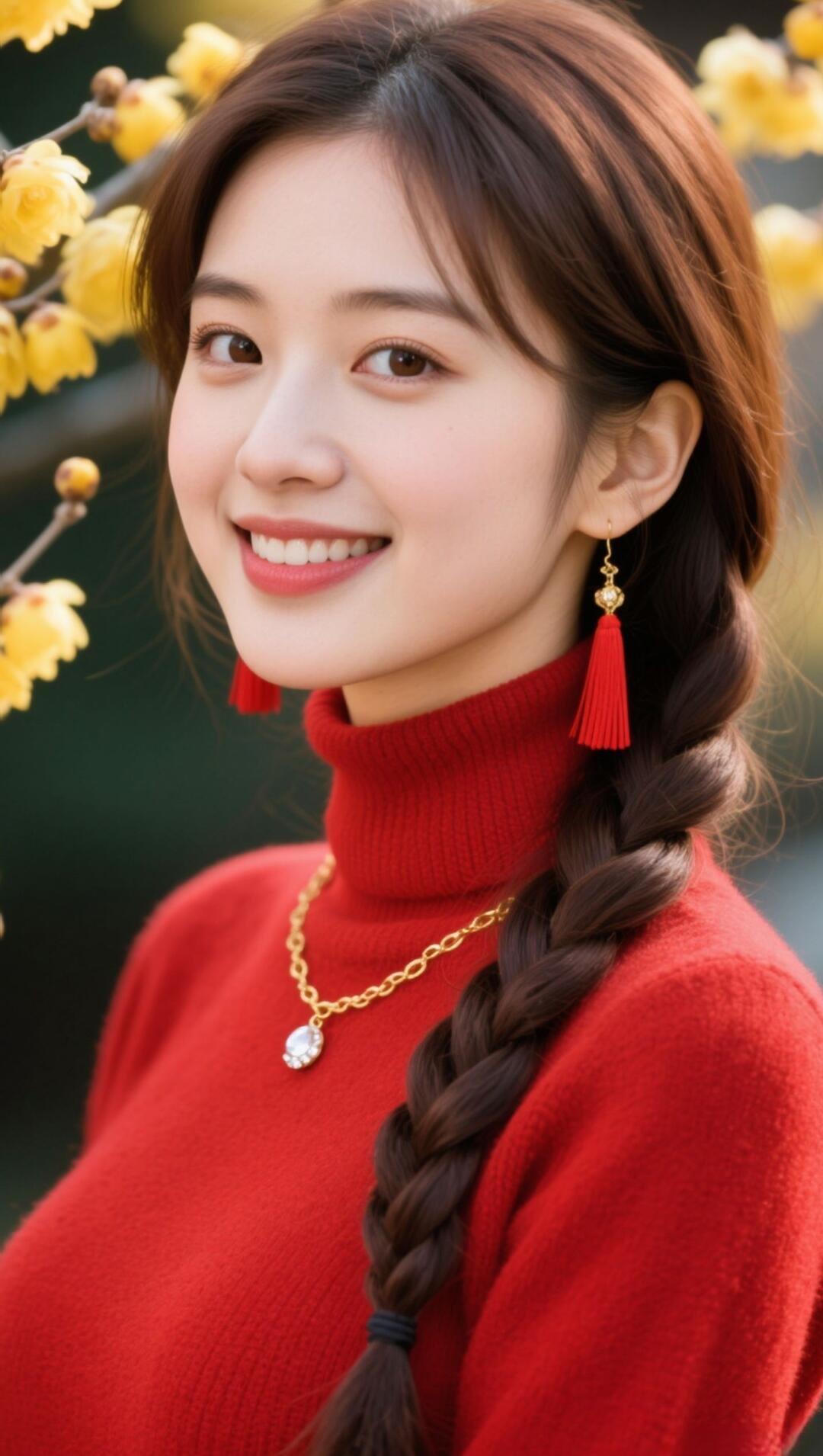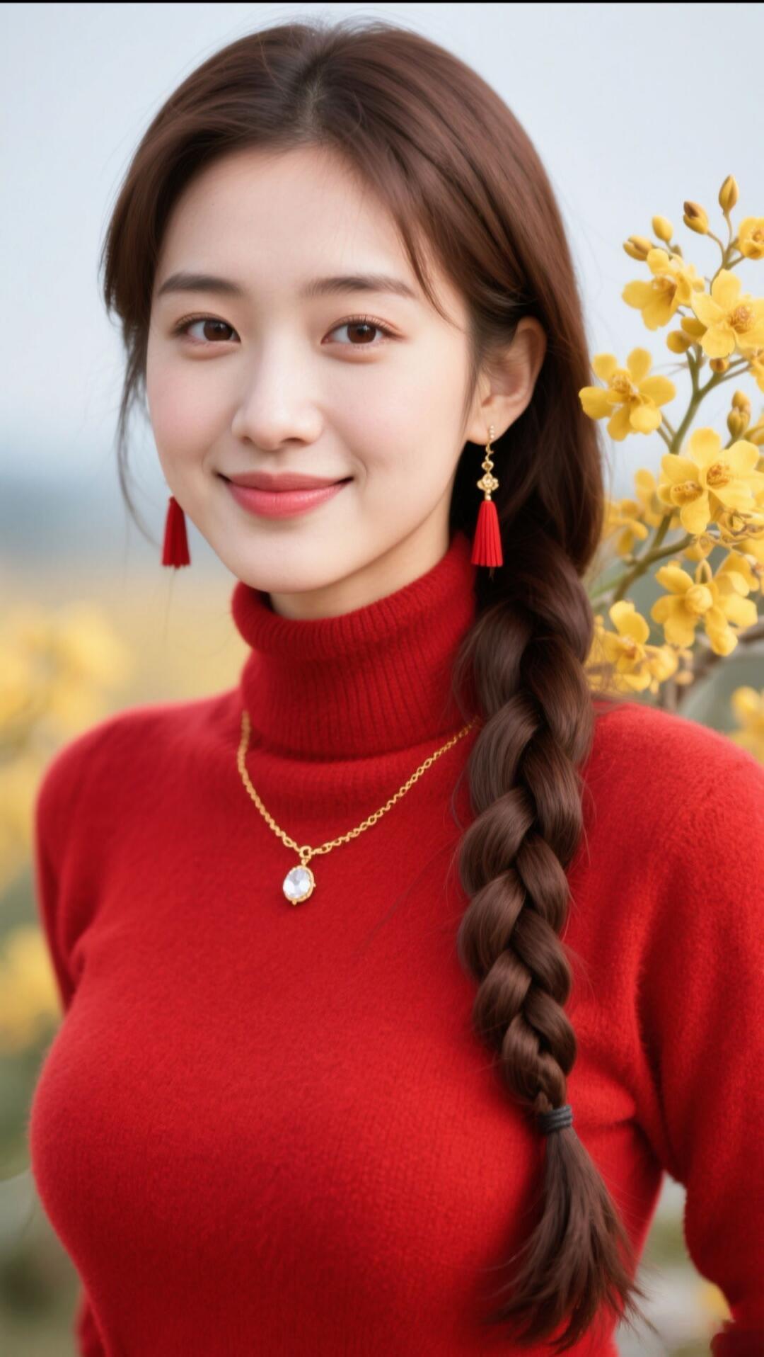 冬日暖阳下的甜美笑容,红衣白围巾,温暖如初。🌞💖