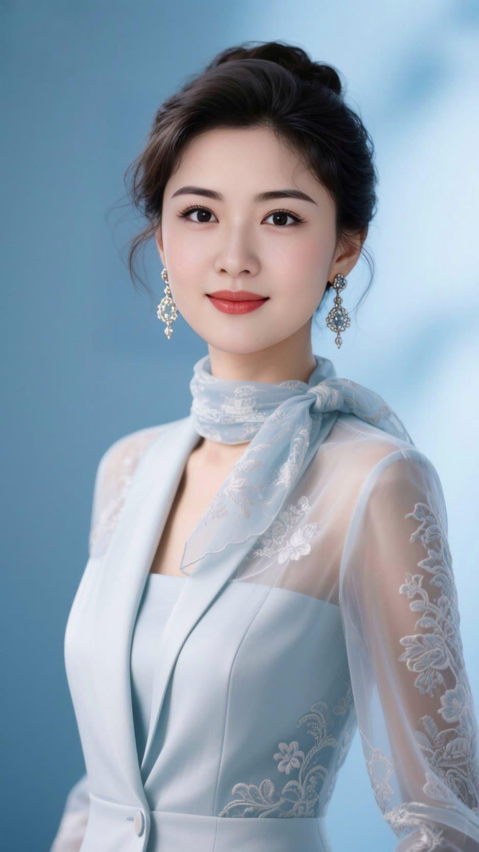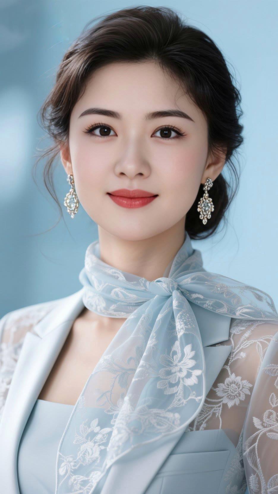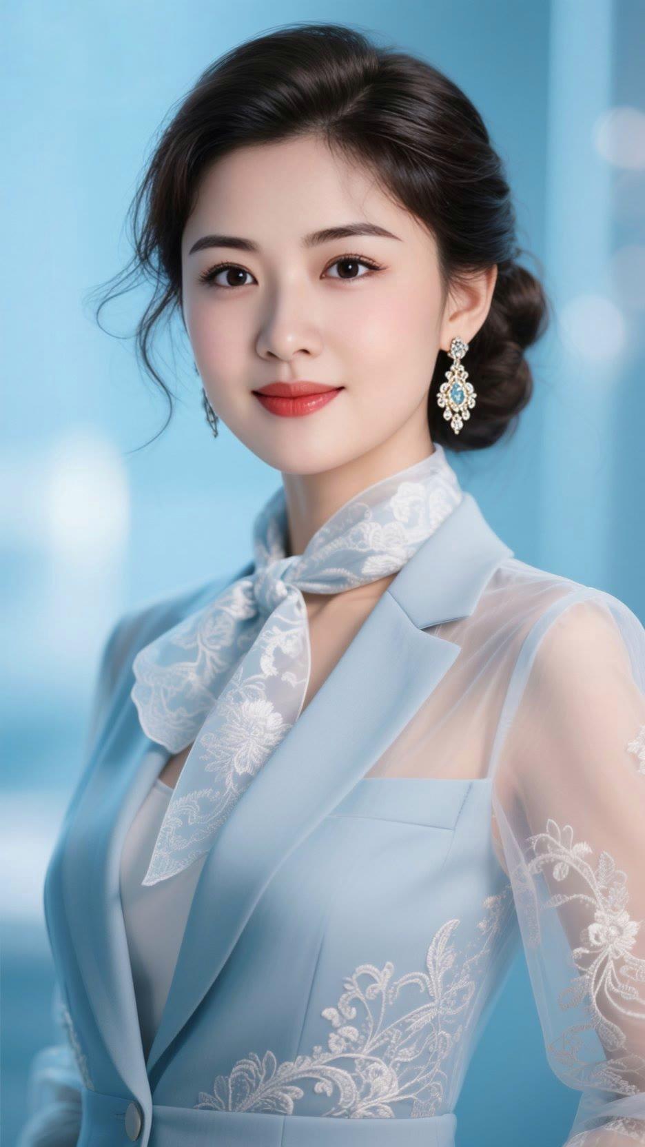 优雅气质,蓝白相间,精致妆容,时尚穿搭
