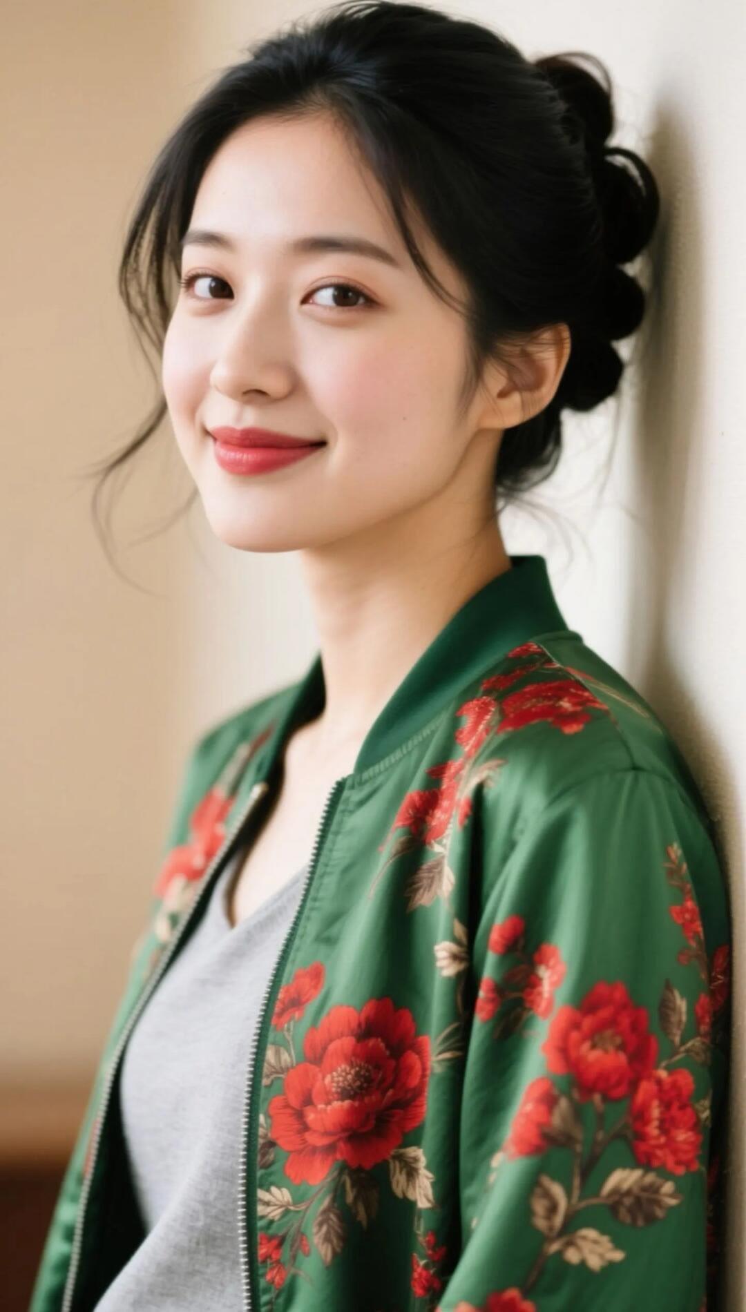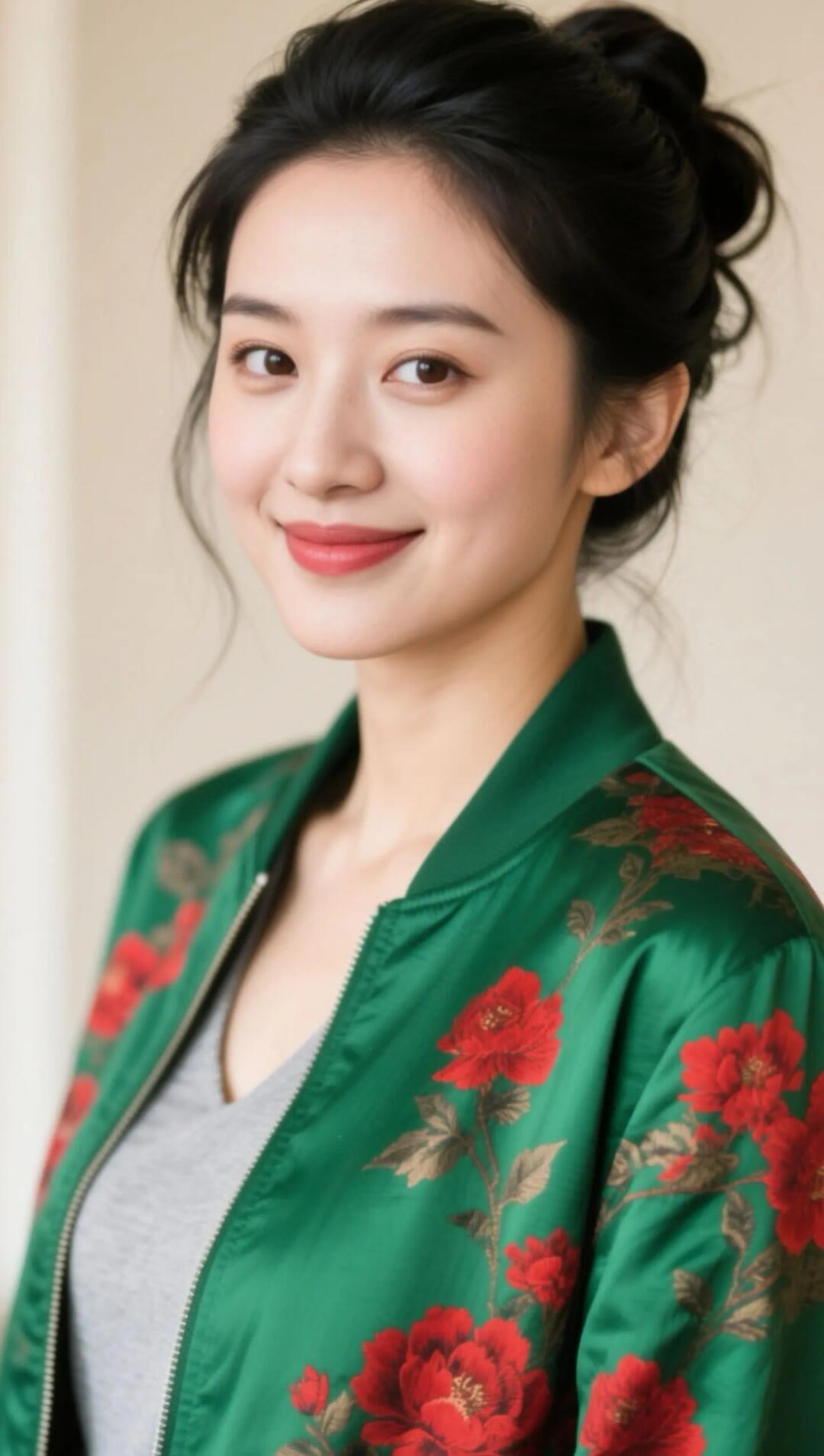 旗袍雅致衬娇容,白底牡丹显风情。玉珠圆润,风情万种。贴身裁剪,凸显性感。