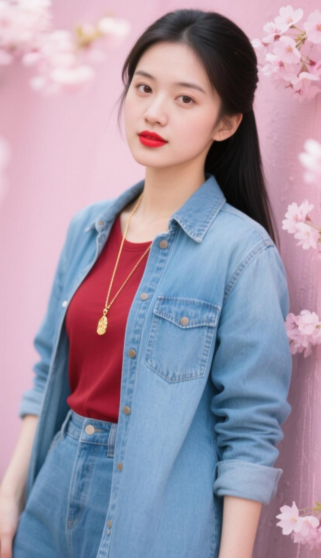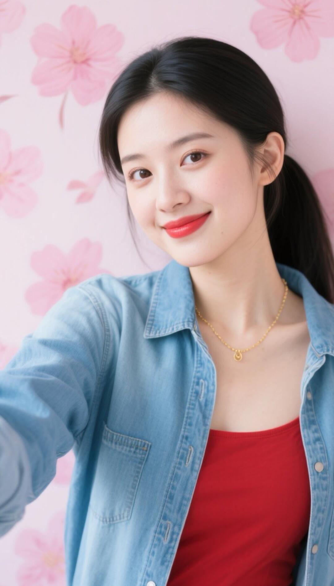 春日少女风,粉色樱花背景,甜美自拍