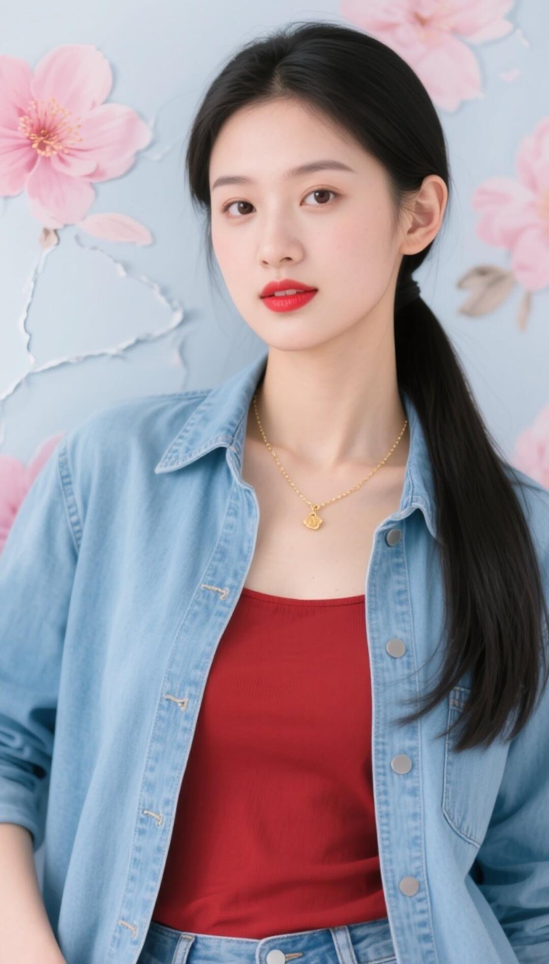 优雅气质,蓝白相间,精致妆容,时尚穿搭