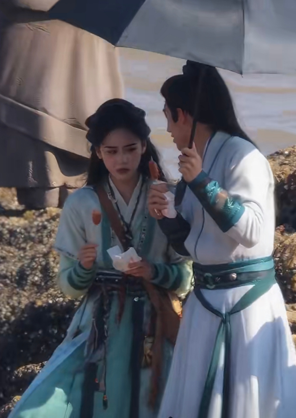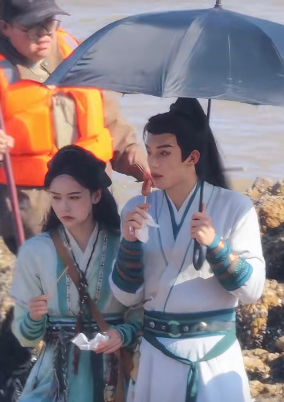 周益如林沐然《烟雨神游记》同框路透,两人吃着烤肠说笑,好可爱!
