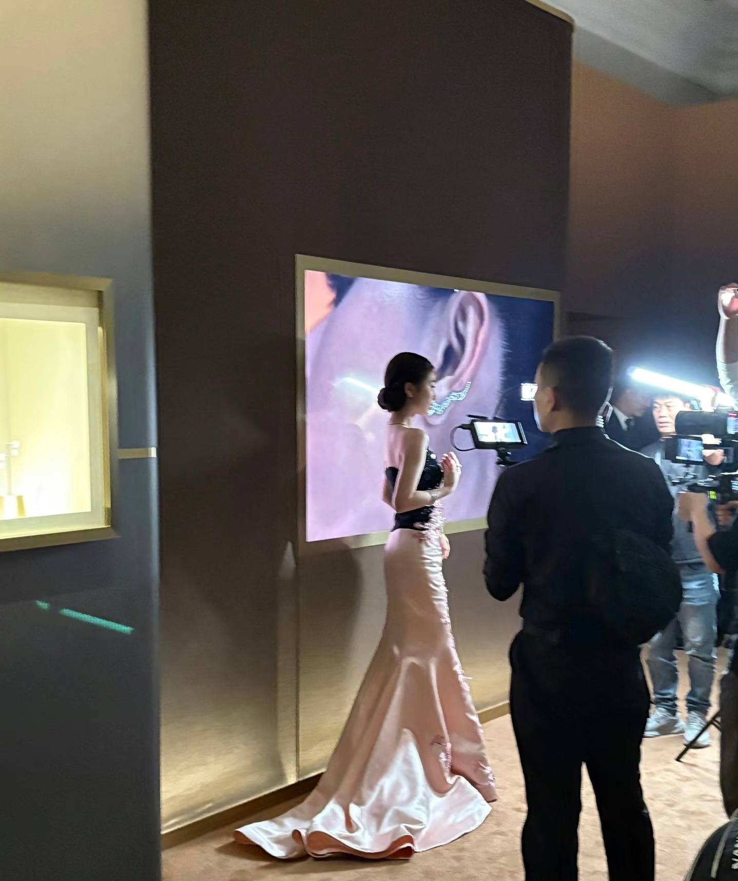张天爱跟素人合影,胯真的好宽,大宅院似的