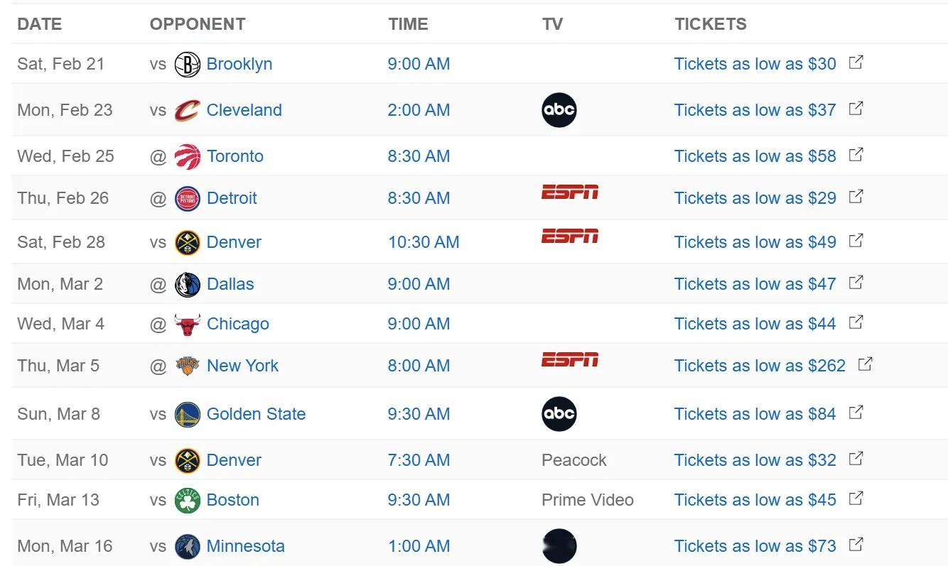 接下来到三月中旬的这段时间雷霆有八场全美直播,亚历山大和米切尔如果一周后能复出,那么他们预计会缺席四场比赛。SGA目前56场打了49场,距离65场的评奖资格线还有10场比赛的额度。