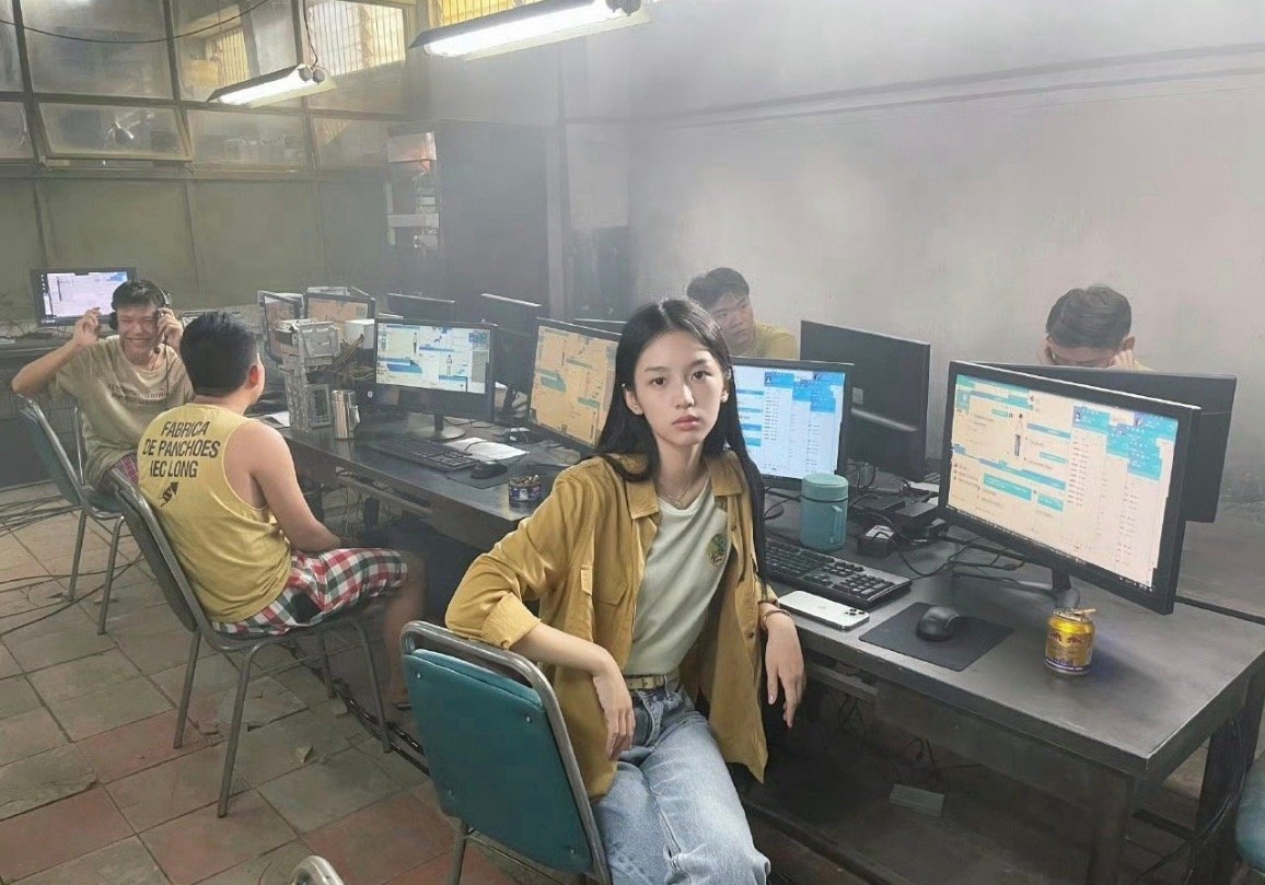 张天爱跟素人合影,胯真的好宽,大宅院似的