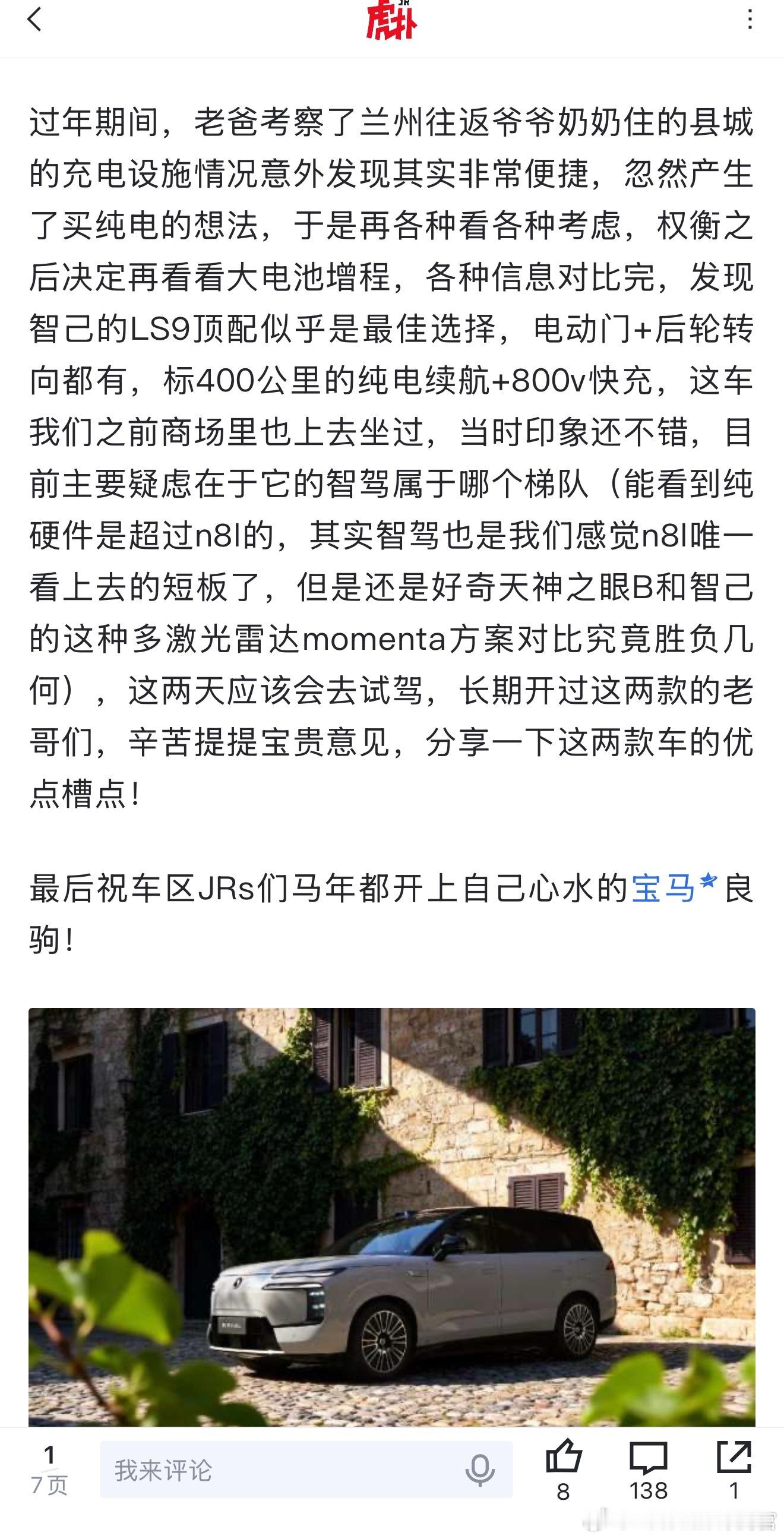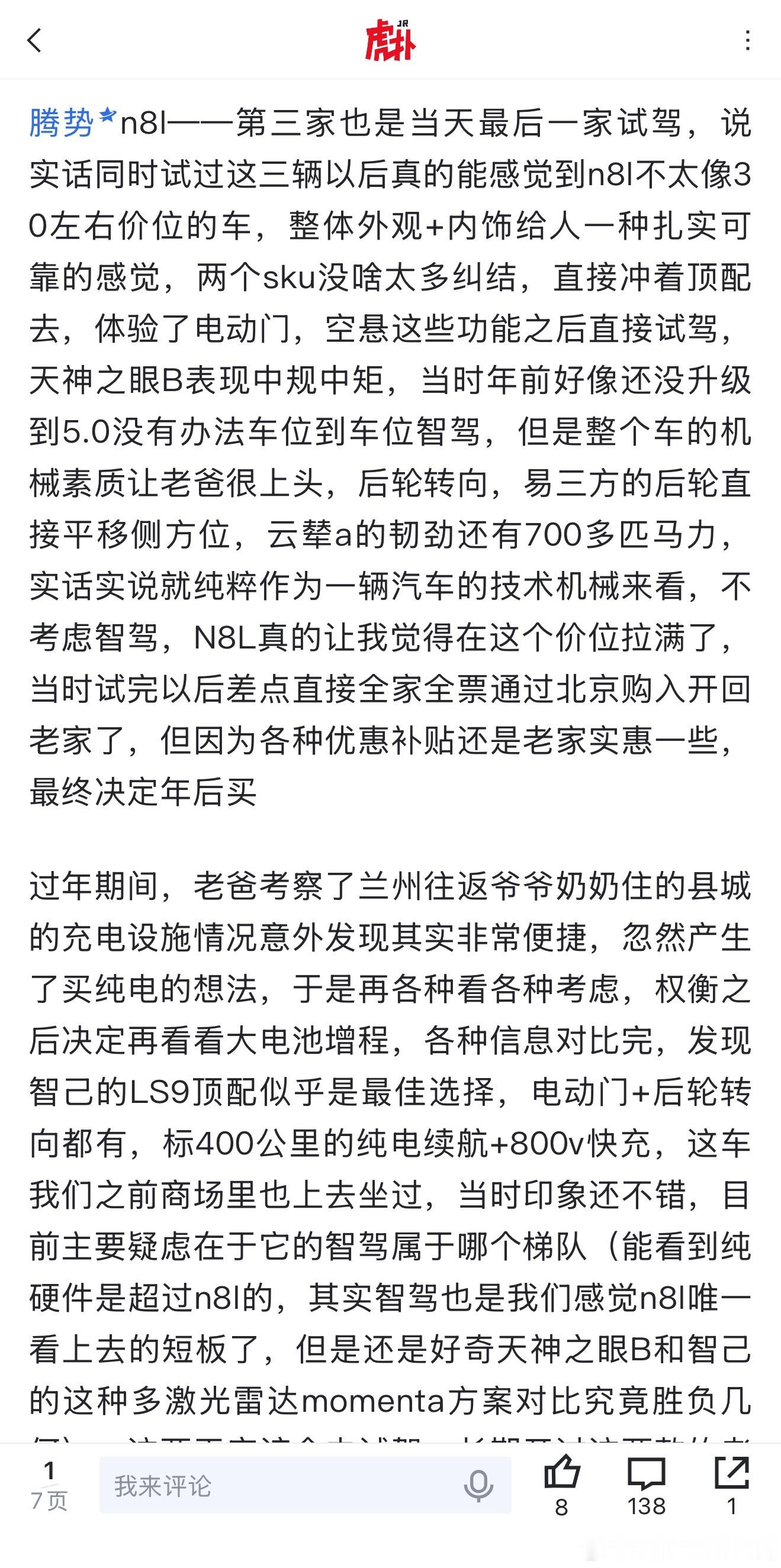 网友在腾势N8L、智己LS9、问界M7、领克900之间试驾抉择