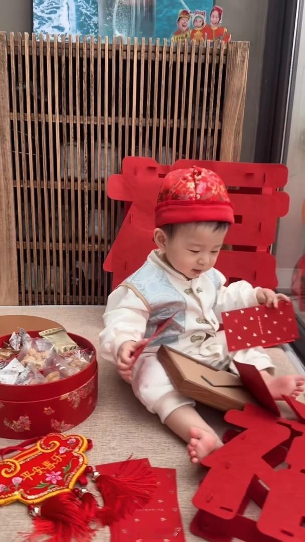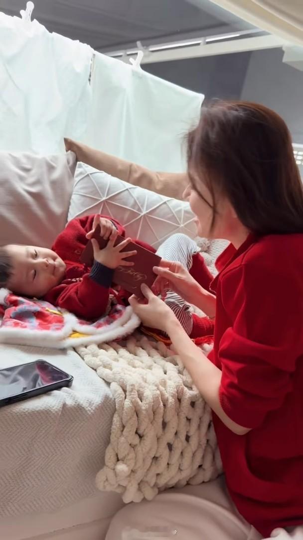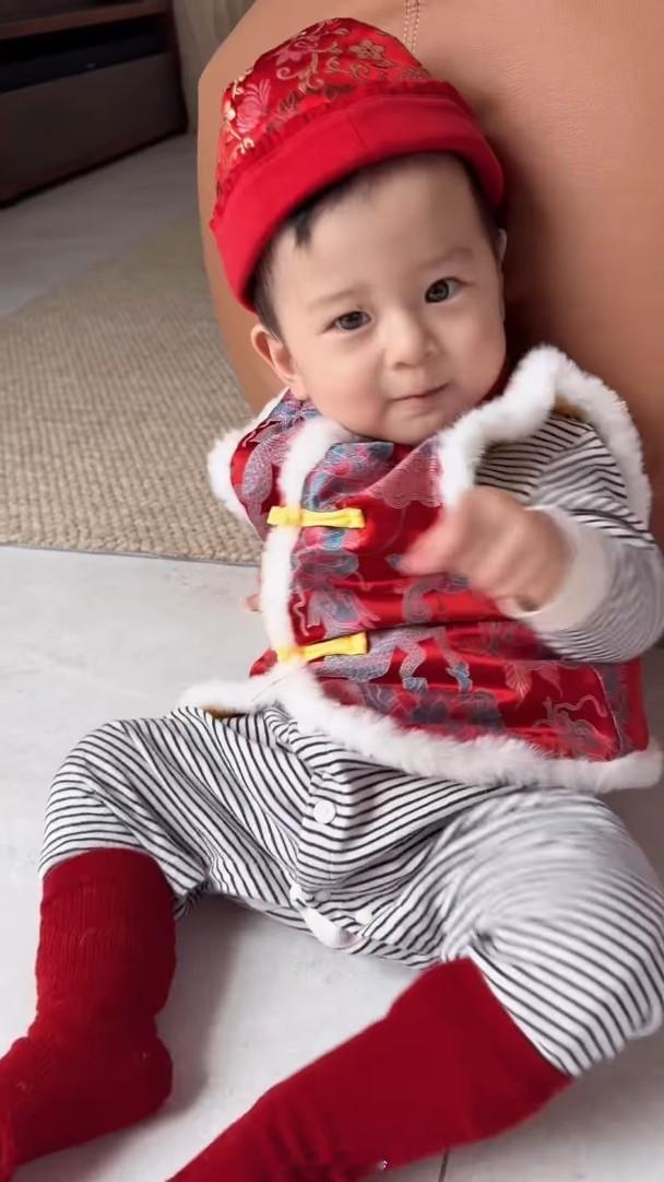 藝人蕭正楠與黃翠如的兒子「蕭哈哈」快將一歲,現時正學行、牙牙學語,眼睛又圓又大的他,長得精靈活潑,一舉一動都氹得阿蕭及翠如開心不已。昨日翠如於社交網PO了一家三口的短片,他們穿着紅色衫充滿喜慶感,而穿了紅色小背心的「哈哈」在地上爬行,又坐在地上玩利是,相當可愛,阿蕭又向「躺平」的「哈哈」送上利是,他笑說:「咁大枝嘢嘅,愛媽媽,同爸爸係最好嘅朋友。」黃翠如則笑說:「畀兩封利是你,可以即刻躺平。」一臉慈愛。翠如又留言祝大家幸福快樂,而姚子羚、王君馨都留言大讚哈哈可愛又得意呢!