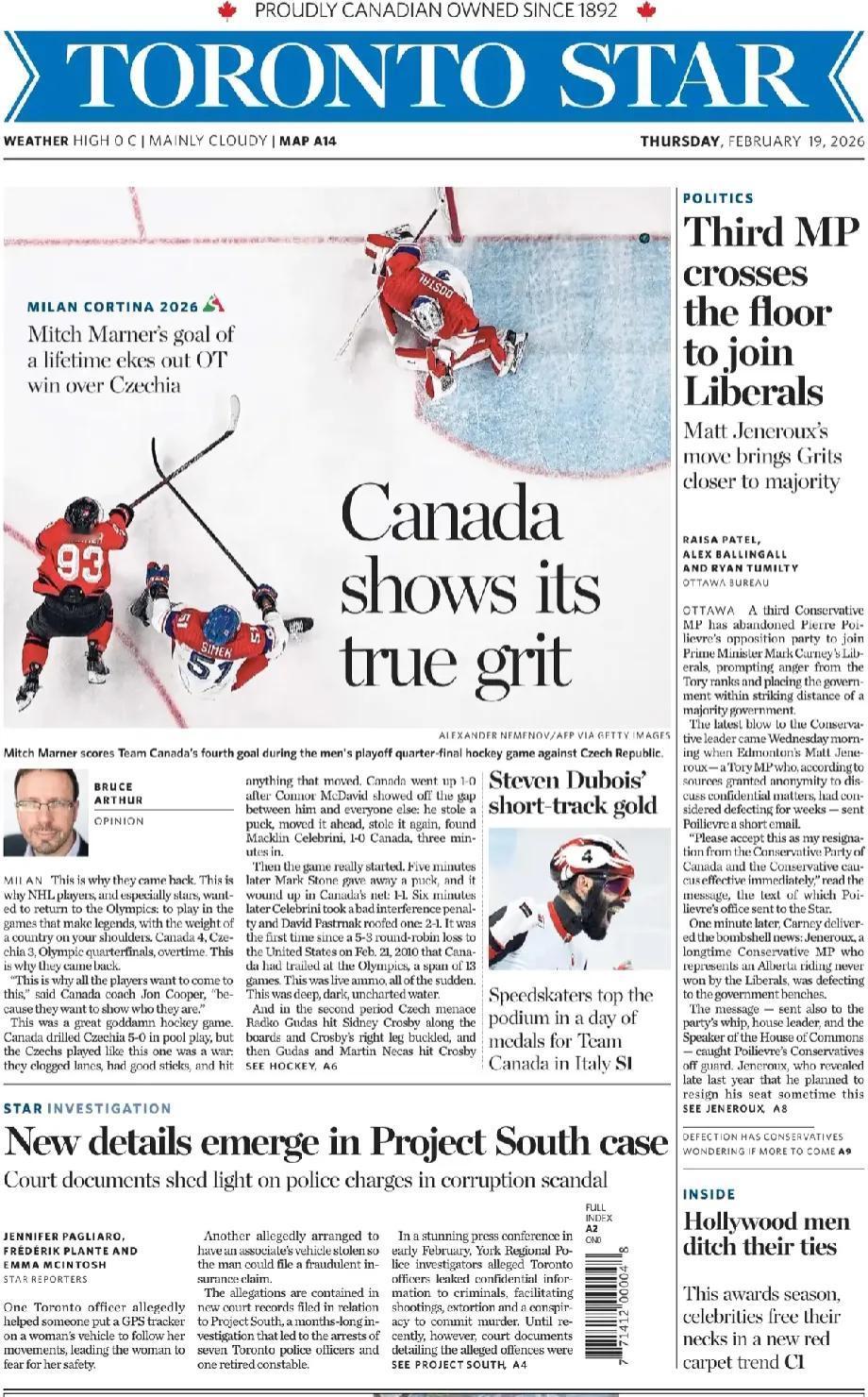 在冬奥会冰球1/4赛场上,加拿大队4-3有惊无险的战胜捷克队这让加拿大媒体欣喜若狂。 加拿大冰球就如同中国乒乓球一样重要,这种说法反映了冰球在加拿大的国民地位和文化象征意义。 冰球在加拿大被广泛视为“国球”,其社会影响力、群众基础和民族认同感,与中国乒乓球在中国的地位高度相似。 1.全民参与度高:冰球是加拿大最普及的冬季运动,儿童从小接触滑冰和冰球,社区、学校、公园普遍设有冰场,街头冰球(street hockey)在非冬季也广泛开展。 2.国家荣誉象征:加拿大男子冰球队在冬奥会历史上共获得9次金牌,女子冰球队5次夺冠,长期占据国际冰球霸主地位,冰球胜利常被视为国家荣耀。 3.基础设施庞大:加拿大拥有3300多座冰球馆,超过全球其他国家总和;注册冰球运动员达50余万,占全球总数近40%。 4.文化深度融入:冰球贯穿加拿大社会生活,从NHL职业联赛(如多伦多枫叶队)到家庭围炉观赛,冰球不仅是运动,更是身份认同的核心符号。 加拿大人普遍将冰球视为“我们的运动”(“It's Our Game”),无论年龄、职业或社会阶层,都对冰球有深厚情感。 冰球在加拿大拥有广泛的群众基础,儿童从小接触滑冰和冰球,社区、学校普遍设有冰场,冬季街头冰球随处可见。