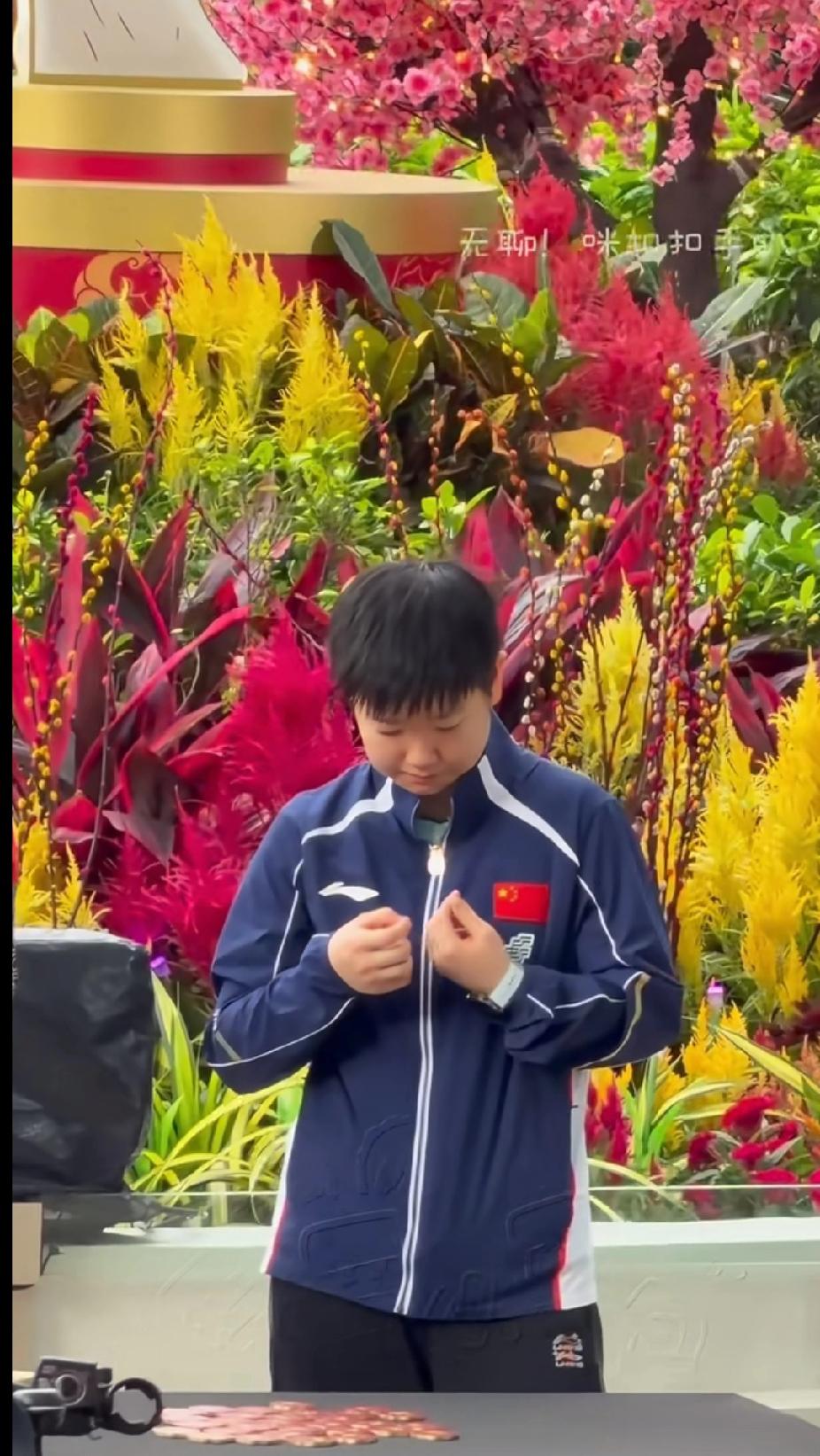 新加坡大满贯抽签仪式上,孙颖莎这小模样谁看了不迷糊! 抽中的“硬币签”不小心掉在地上,把旁边的东道主选手舒麟茜都吓了一跳,她赶紧捡起来还憨憨一笑,那小表情又萌又好笑。 听抽签结果时眼睛滴溜溜转,忙着“练听力”,没过一会又开始玩手指,全程像个坐不住的小朋友,可爱到犯规! 孙颖莎 新加坡大满贯
