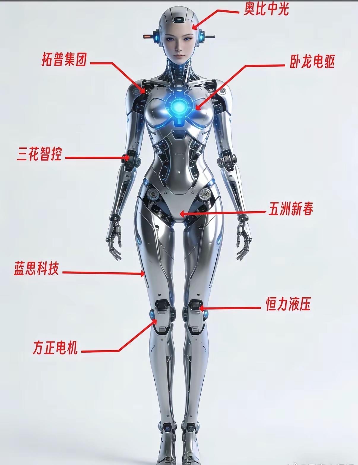 认识国内机器人的制造框架。 原来国内的机器人和汽车制造一样,也是组装的。 生产机器人的产业遵循“上游核心部件—中游整机集成—下游场景应用”的金字塔结构。图片中标注的奥比中光(视觉传感器)、卧龙电驱(伺服系统)、绿的谐波(减速器)等企业,就如同汽车行业的博世(零部件)、宁德时代(电池),专门负责核心模块的研发生产;而整机厂商则像车企一样,将这些“标准化零件”进行系统集成、调试与组装,最终形成完整产品。这种分工是全球高端制造业的通用高效模式,汽车如此,机器人亦是如此。 简言之,中国机器人和汽车一样,都是产业链协同下的模块化集成制造,但这是高端制造的必然模式;如今的中国机器人产业,早已超越了“简单组装”的阶段,在核心部件自研和系统集成能力上,已形成与汽车工业比肩的国产供应链优势。