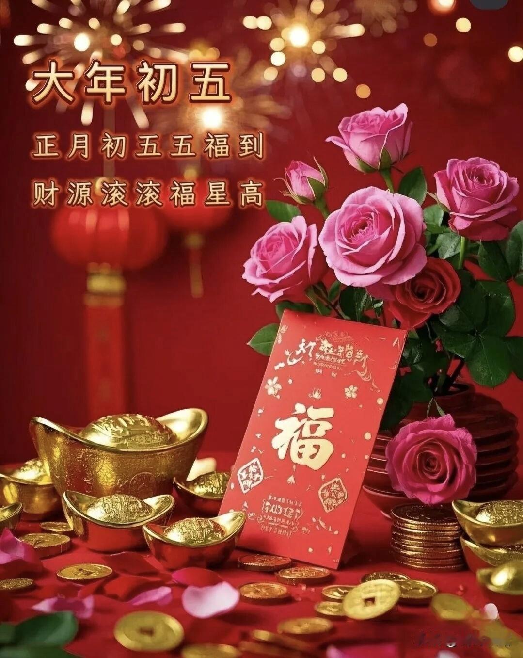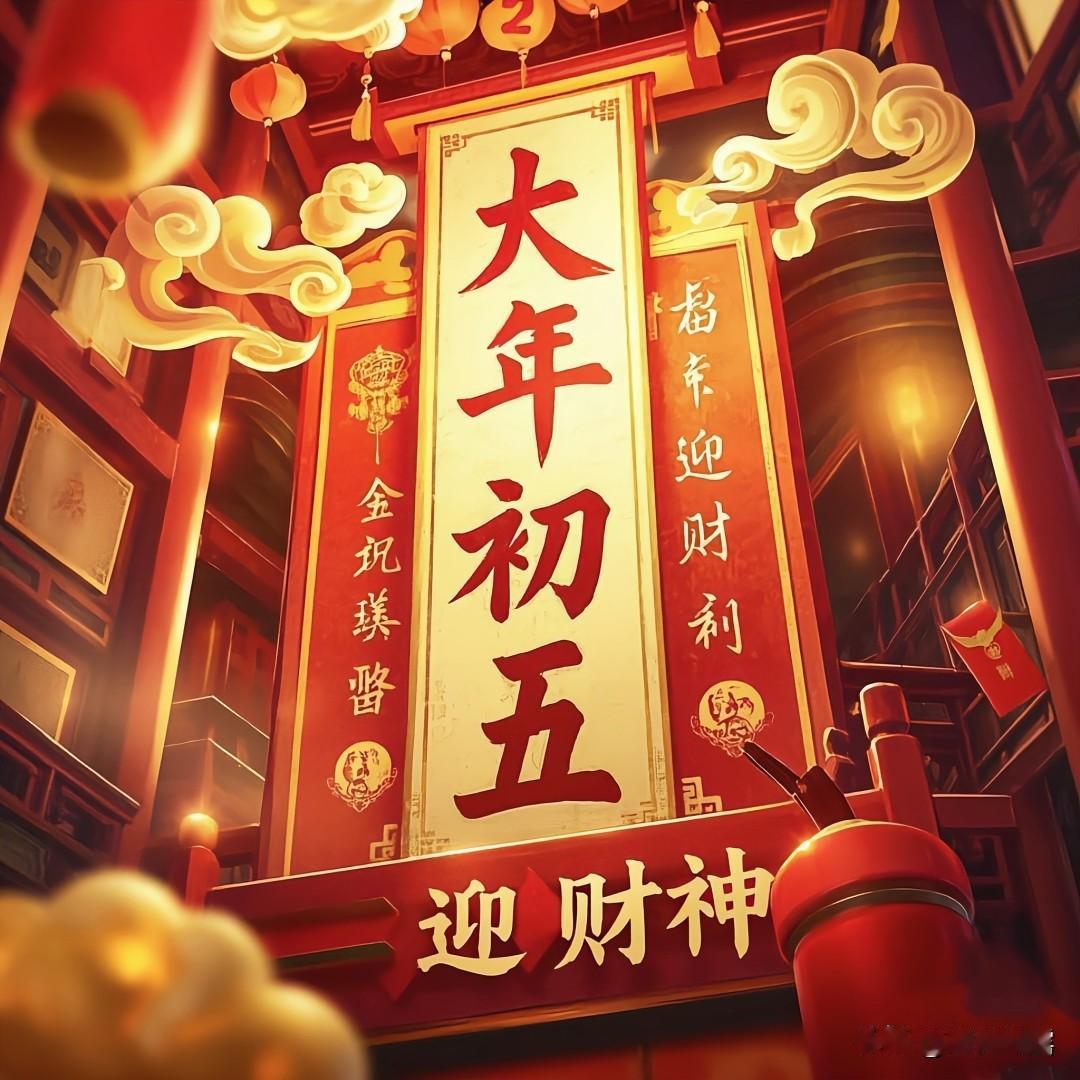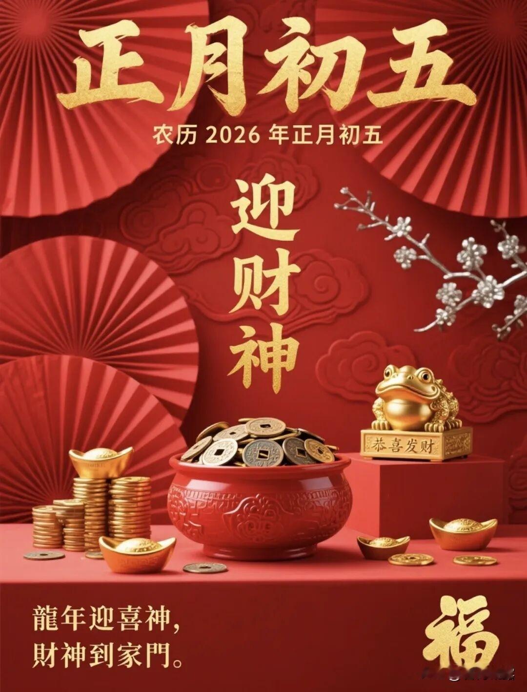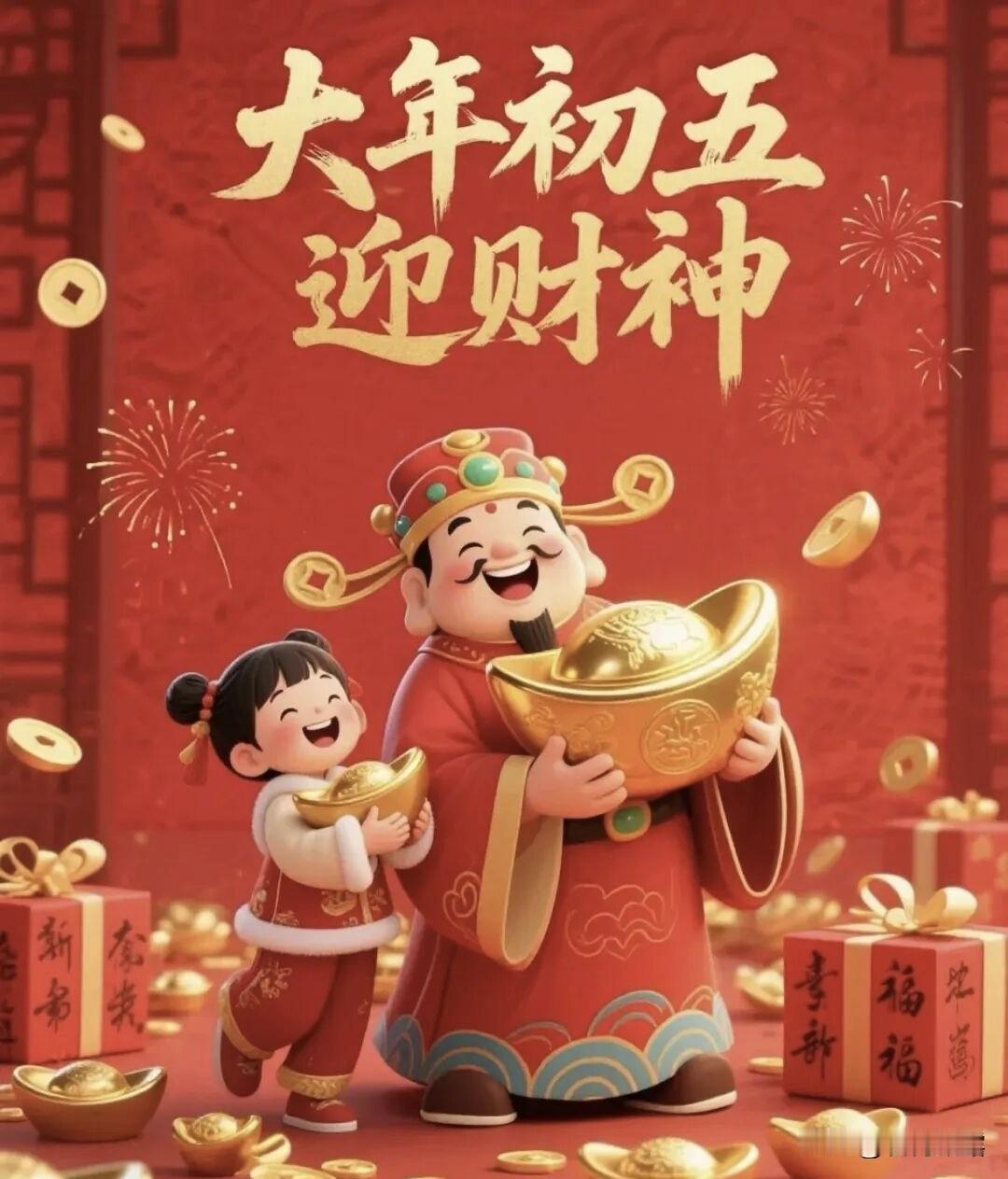 正月初五财神日: 正月初五迎财神, 迎福迎财迎好运, 财源广进发财年, 开门迎来