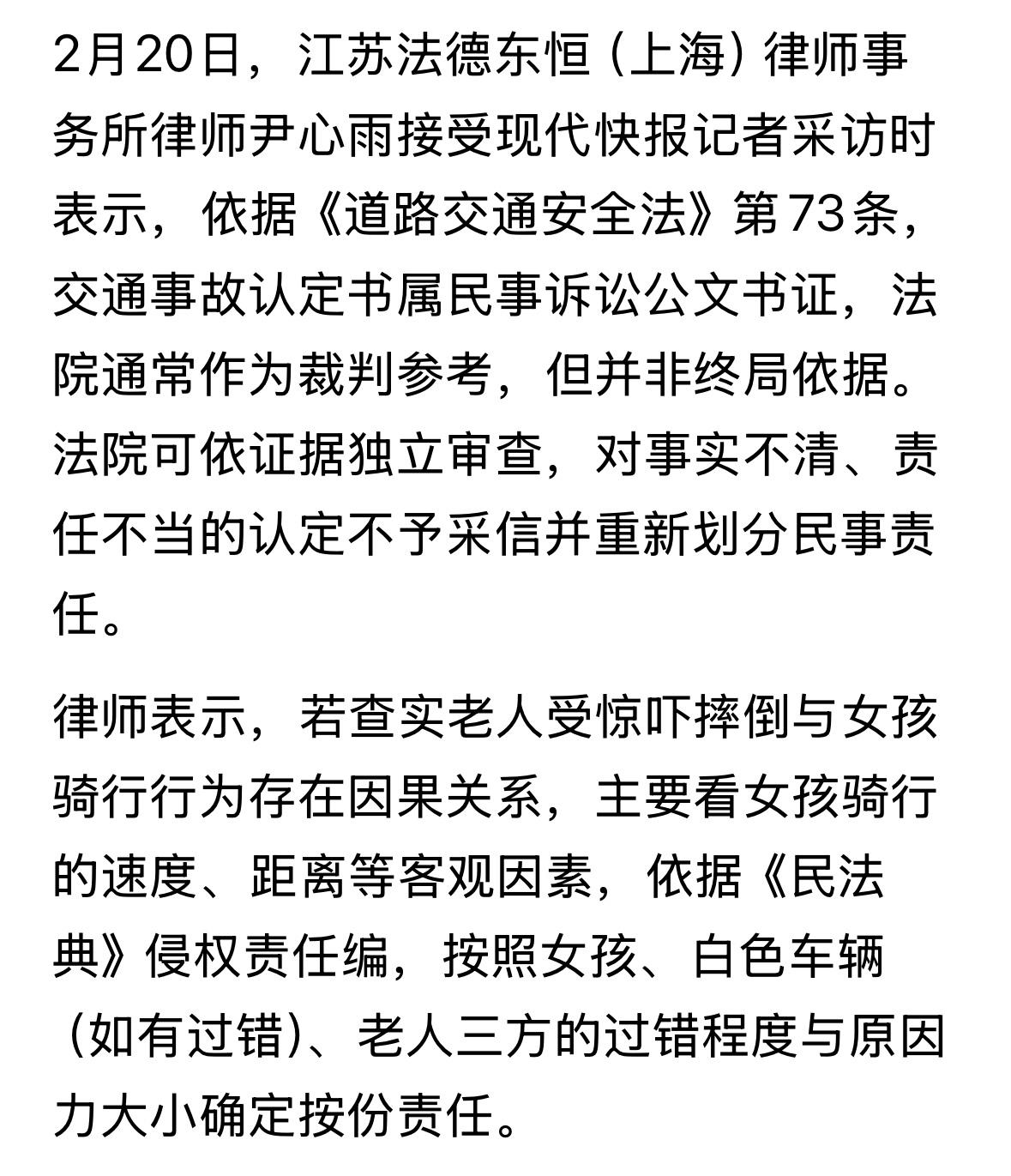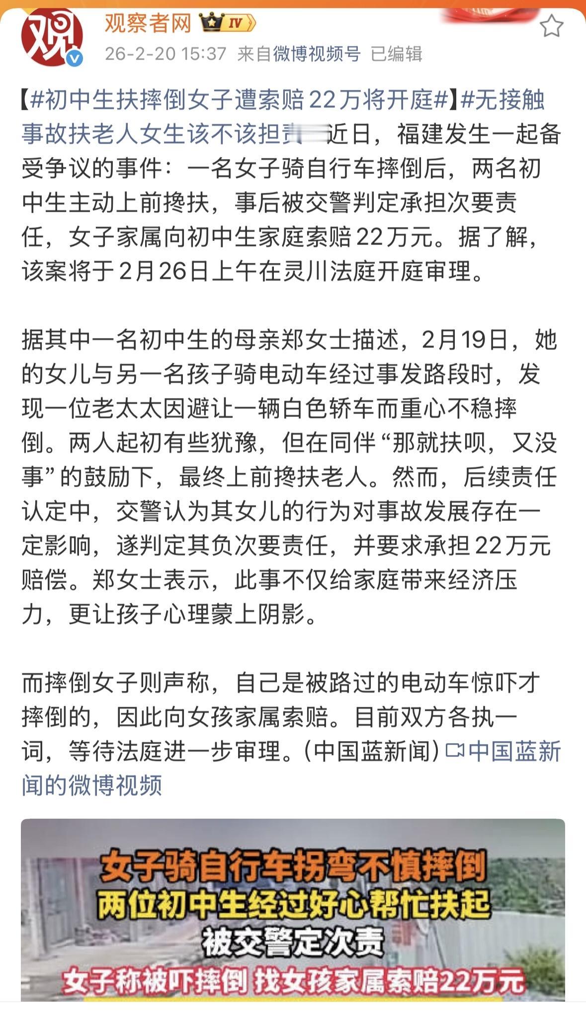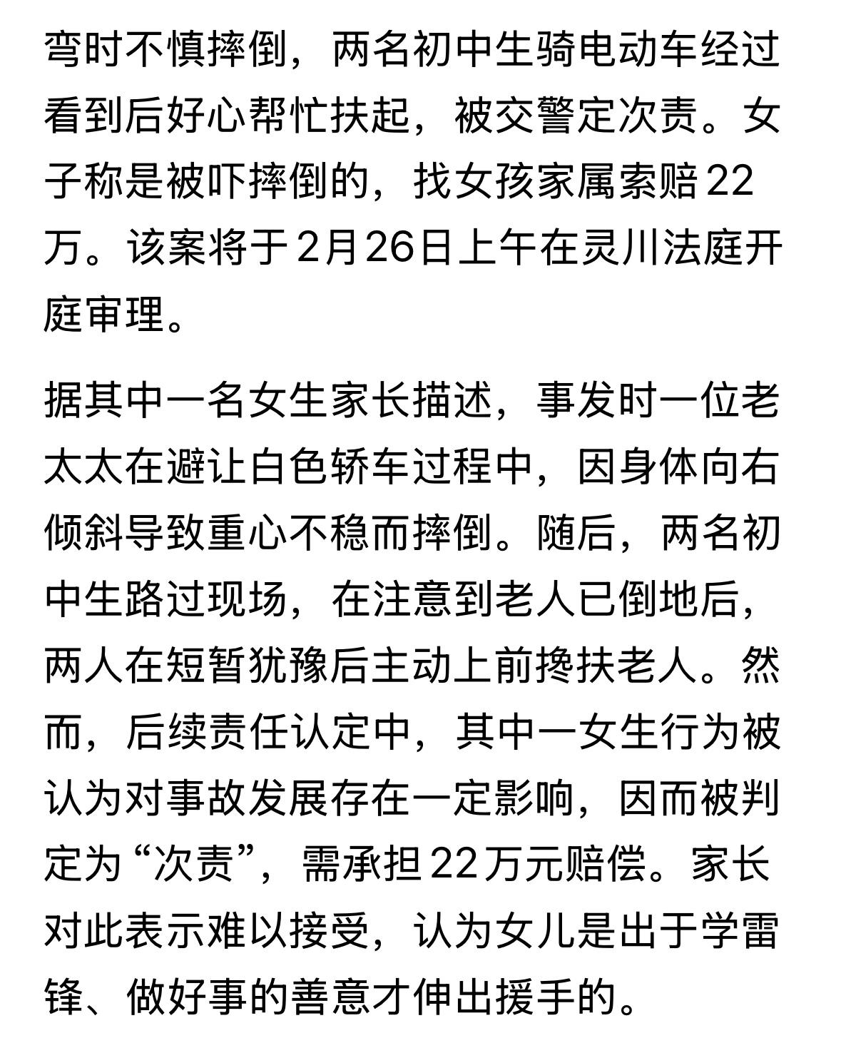 这个案件,需要持续讨论,非常有意义,在当前世风日下的时候,把这个事情搞清楚,消除人们对“扶不扶”的疑虑,应该有帮助。提两个问题,一是,女孩家属是不是应该先去申请行政复议,申请撤销警察的裁定书?如果能撤销警察的次责裁定书,索赔就没有依据了。二是,所谓的受到惊吓,标准是什么?比如说,一只大狼狗走过来,十有八九,都觉得害怕,那你可以说,受到惊吓,如果一只猫走过来,除了你说受到了惊吓,没有一个人说受到了惊吓,这能怪猫的责任吗?这是不是你自己的事情?
