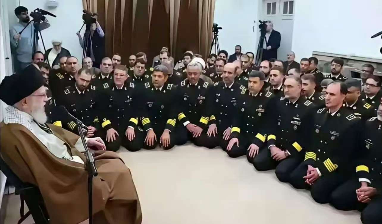 看图说话 【这些跪着的将军能抵抗美军?】膝盖跪的是神权,脊梁弯的是国格。 “十二日战争”里,这些将军们躲在掩体里看核设施被炸,却把“打不还手”包装成“战略忍耐”。这画面不是抵抗,是神权政治下的集体失能——他们只敢对平民硬气,面对美军,只剩下一地跪着的尊严。烽火问鼎计划美以或将对伊朗发动大规模袭击