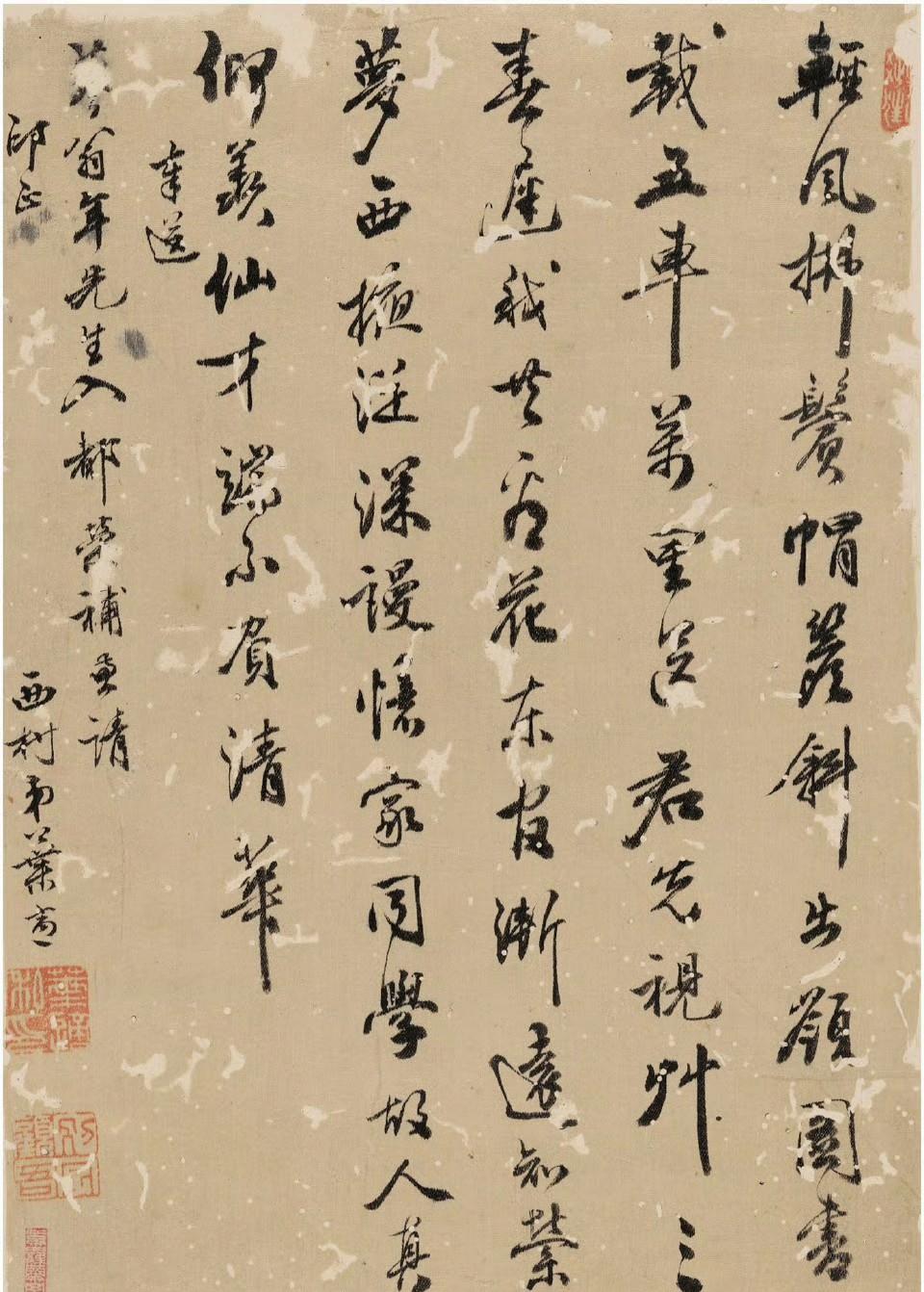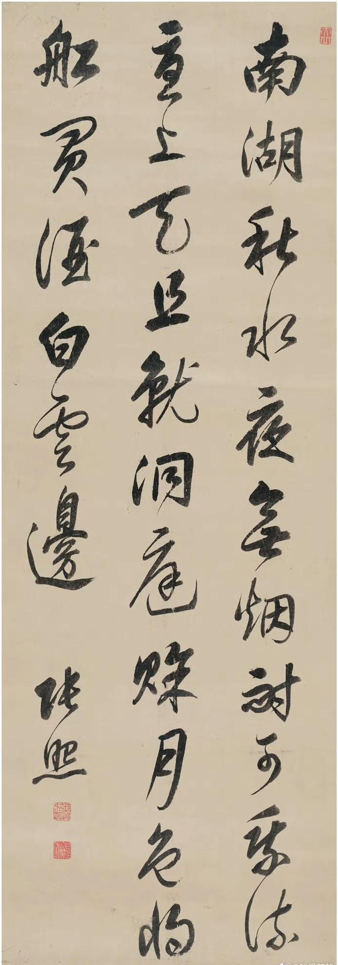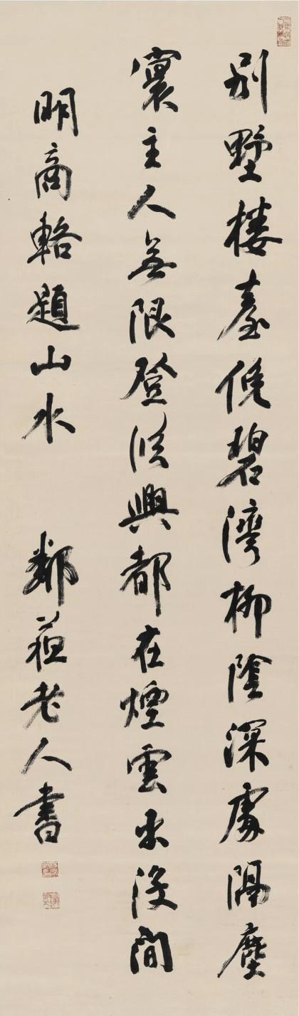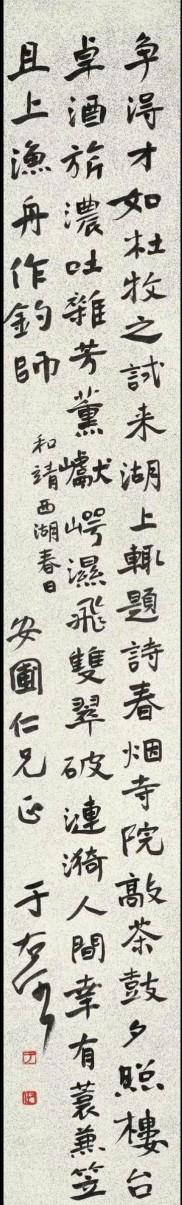 林散之草书 “明月楼台唐文笔,晴日书院古字画”七言联 草书李白《望天门山》。 释文: 天门中断楚江开,碧水东流至此回。 两岸青山相对出,孤帆一片日边来。 赵叔孺 篆书 临秦峄山刻石。释文:廿有六年,上荐高号,孝道显明。既献泰成,乃降专惠,寴远方。登于绎山。 叶 适( 行书 七言诗。释文:清风拂鬓帽檐斜,出岭图书载五车。万里送君先视草,三春迟我无看花。东官渐远知萦梦,西掖从深谩忆家。同学故人其仰羡,仙才端不负清华。 伊秉绶(1754~1815) 行书 七言诗。释文:诗人游倦转风华,咲典征衣为买花。二月春寒难准备,一窗疏影自横斜。 于右任(1879~1964)和靖《西湖春日》。释文:争得才如杜牧之,试来湖上辄题诗。春烟寺院敲茶鼓,夕照楼台卓酒旗。浓 张 照(1691~1745) 行书 李白诗。释文:南湖秋水夜无烟,耐可乘流直上天。且就洞庭赊月色,将船买酒白云边。 杨守敬(1839~1915) 行书 七言诗。释文:别墅楼台俯碧湾,柳阴深处隔尘寰。主人无限登临兴,都在烟云出没间。 舒同 (1906~1998)行书
