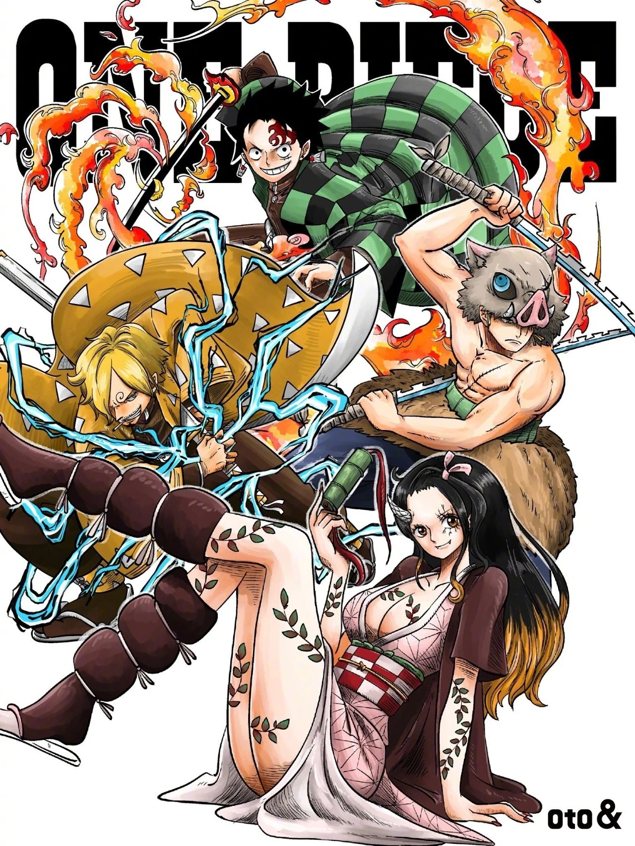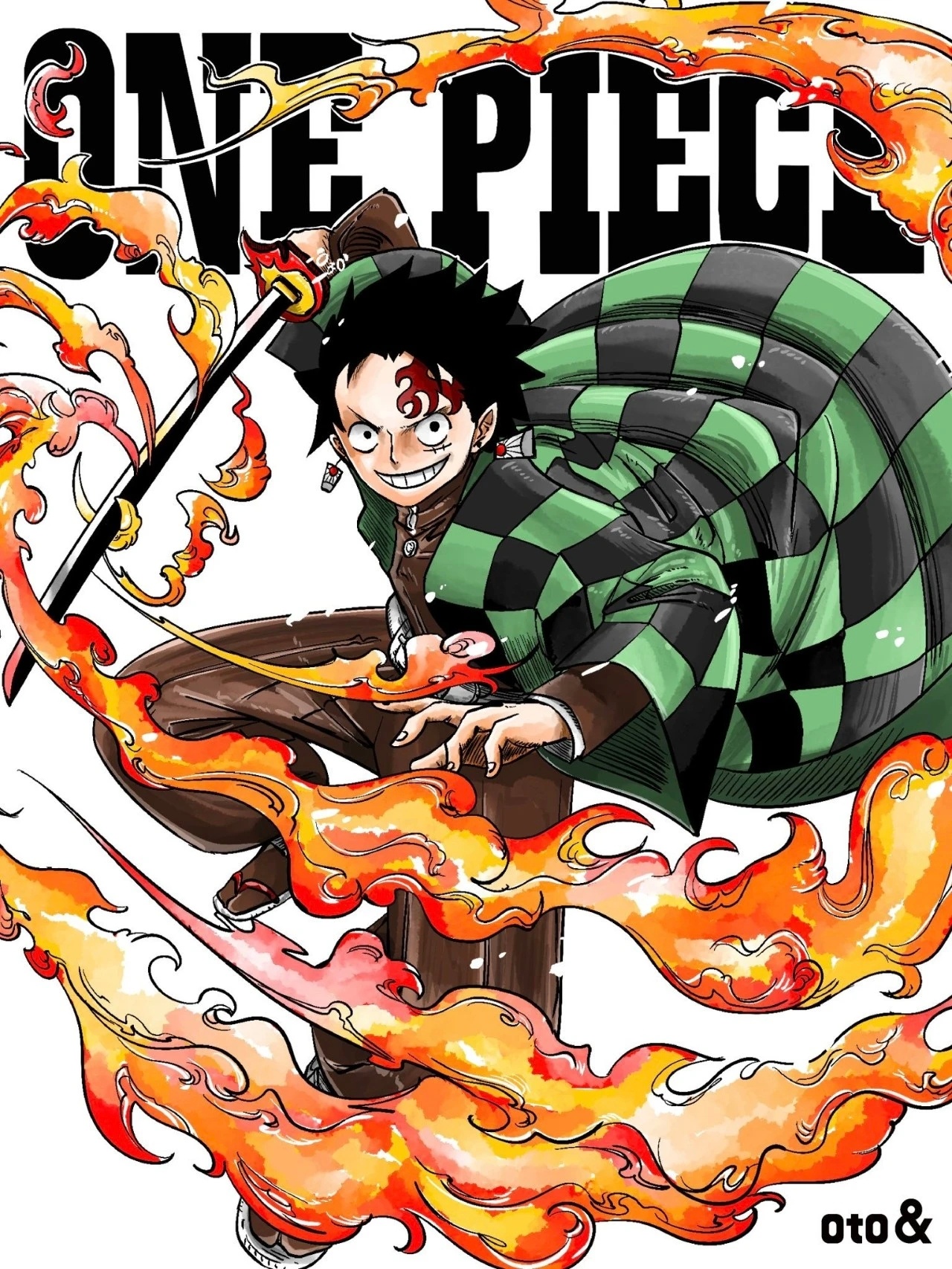 海贼王新年迎喜番次元新星计划海贼王 以海贼王的画风打开鬼灭之刃,真的挺有喜感的画面。