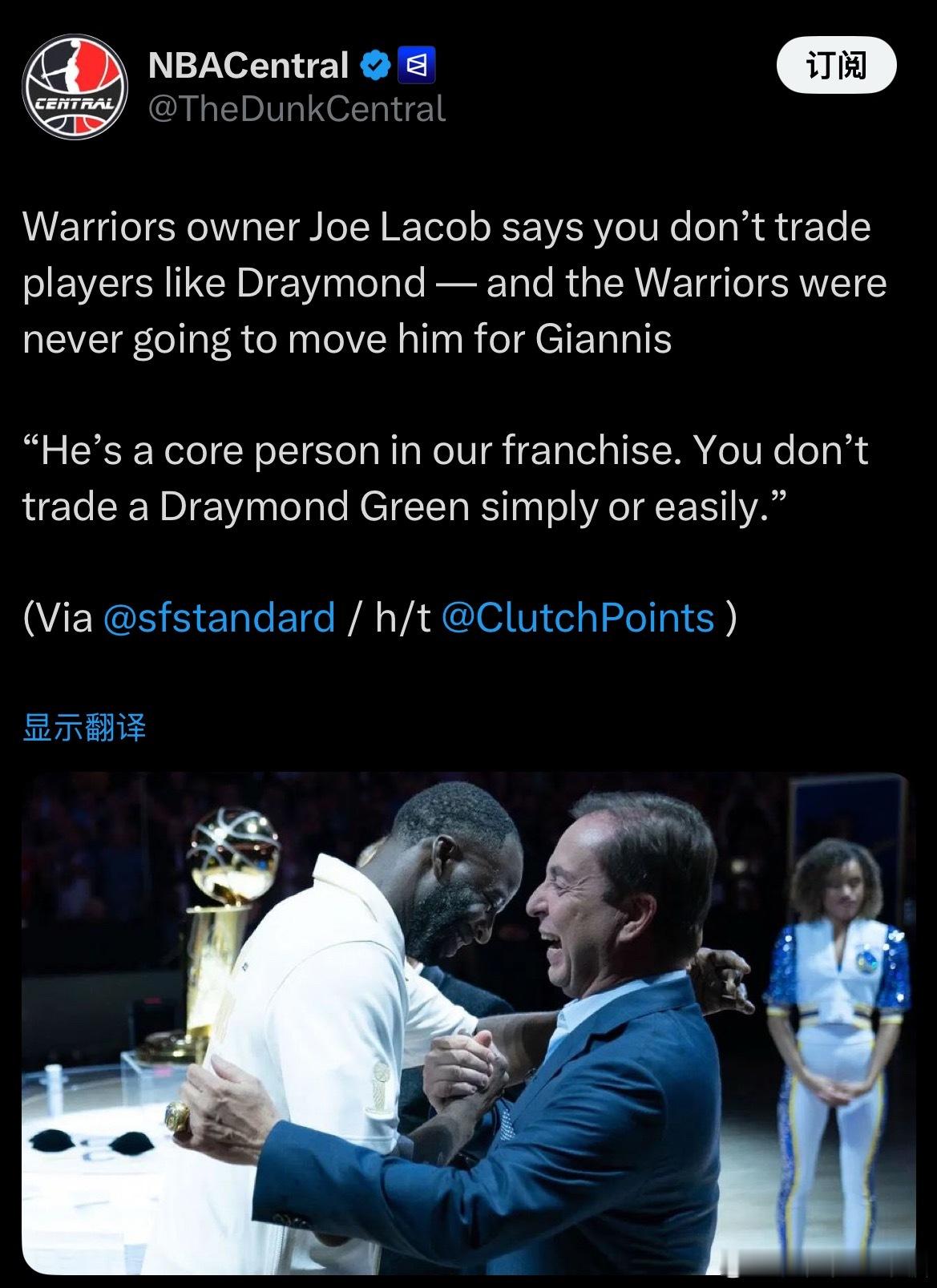 “他是我们球队的核心人物。像德雷蒙德-格林这样的球员,你根本不会轻易交易他。”