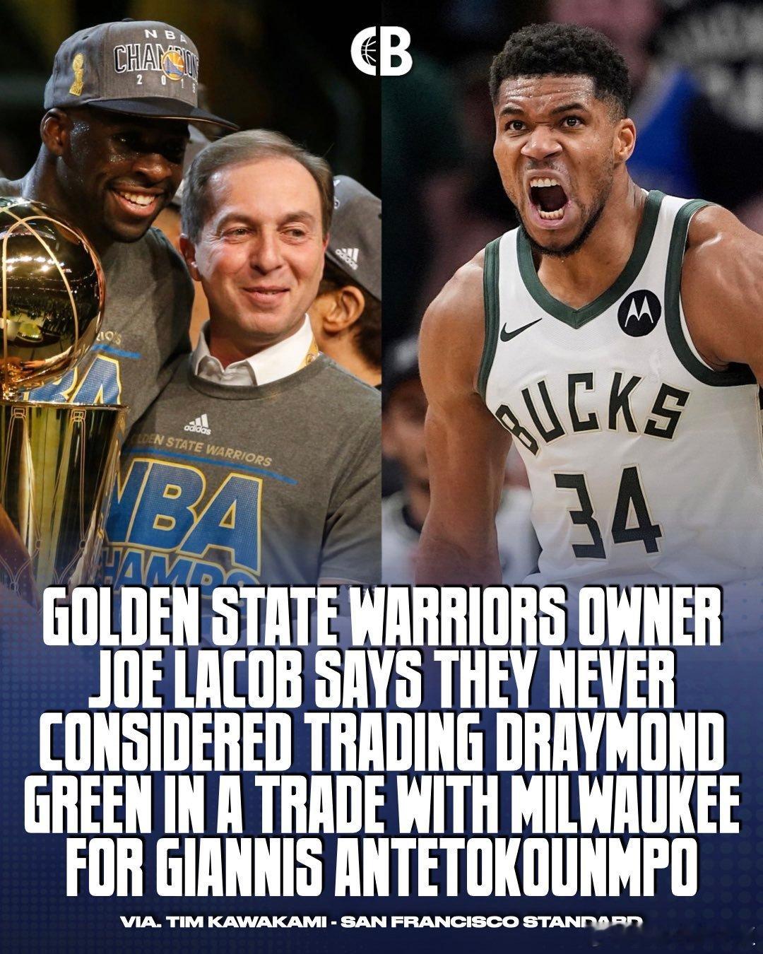 勇士老板乔-拉科布在采访中表示,球队从未将追梦格林列入交易讨论中,勇士也没打算用他去换字母哥