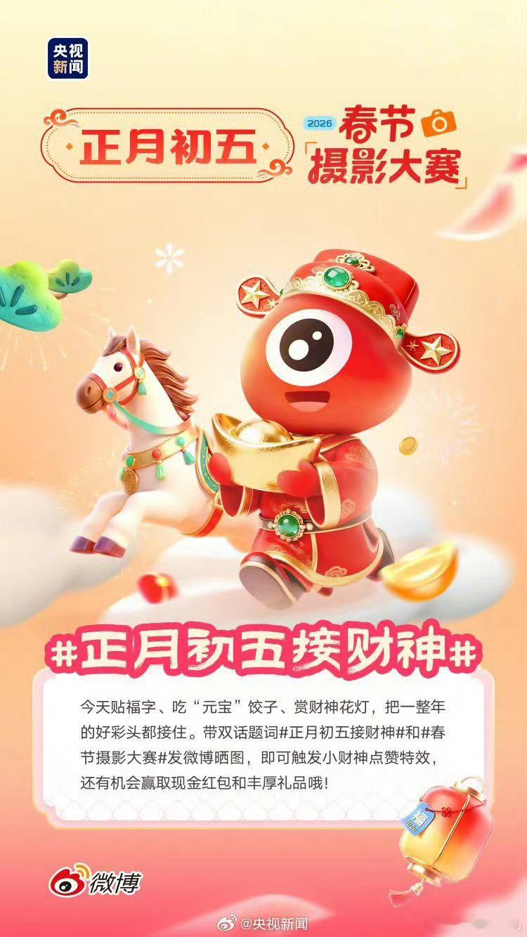 正月初五接财神迎财神 大年初五,迎福纳祥,愿大家接住一整年的好彩头!!!