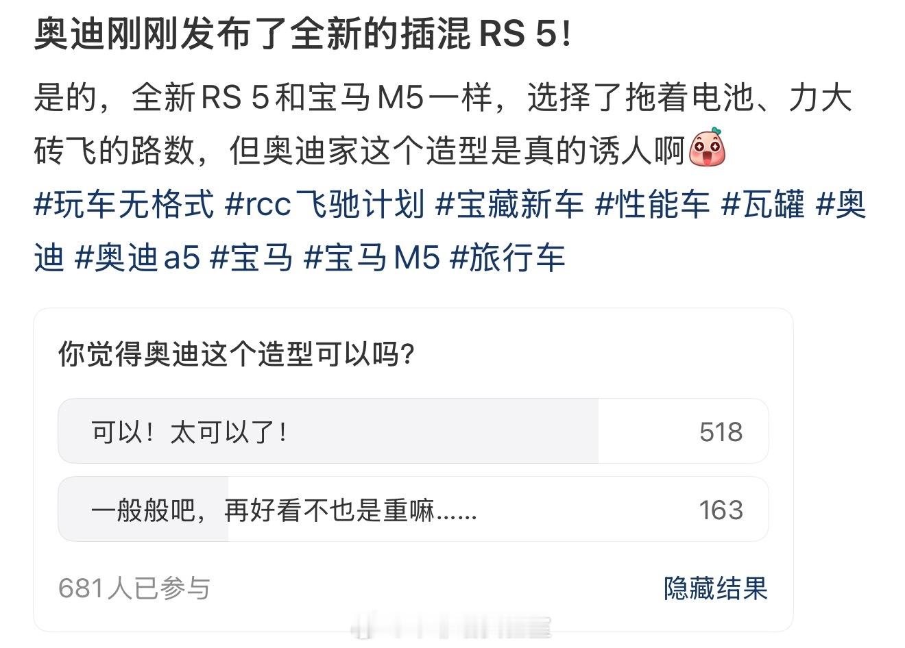 战况更新:颜值派依旧遥遥领先btw能在奥迪RS的文章下面吵起比亚迪的也是真神大v