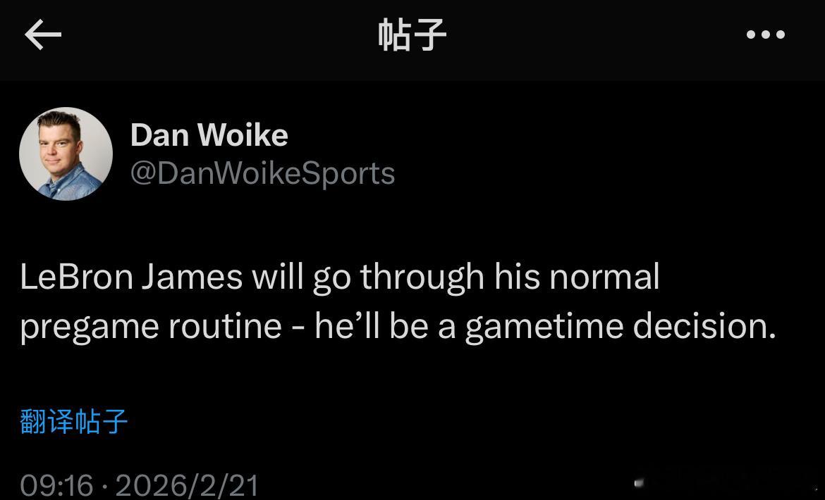 詹姆斯将进行他惯常的赛前准备,他是否出场将在赛前决定。