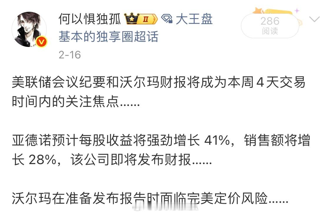 上周提醒亚德诺,本周+5.32%,卖空沃尔玛,本周-8.14%