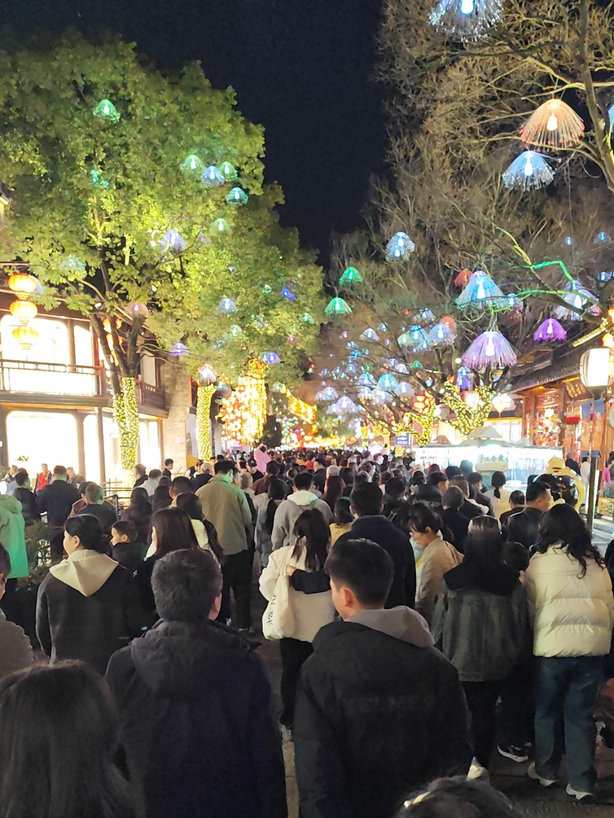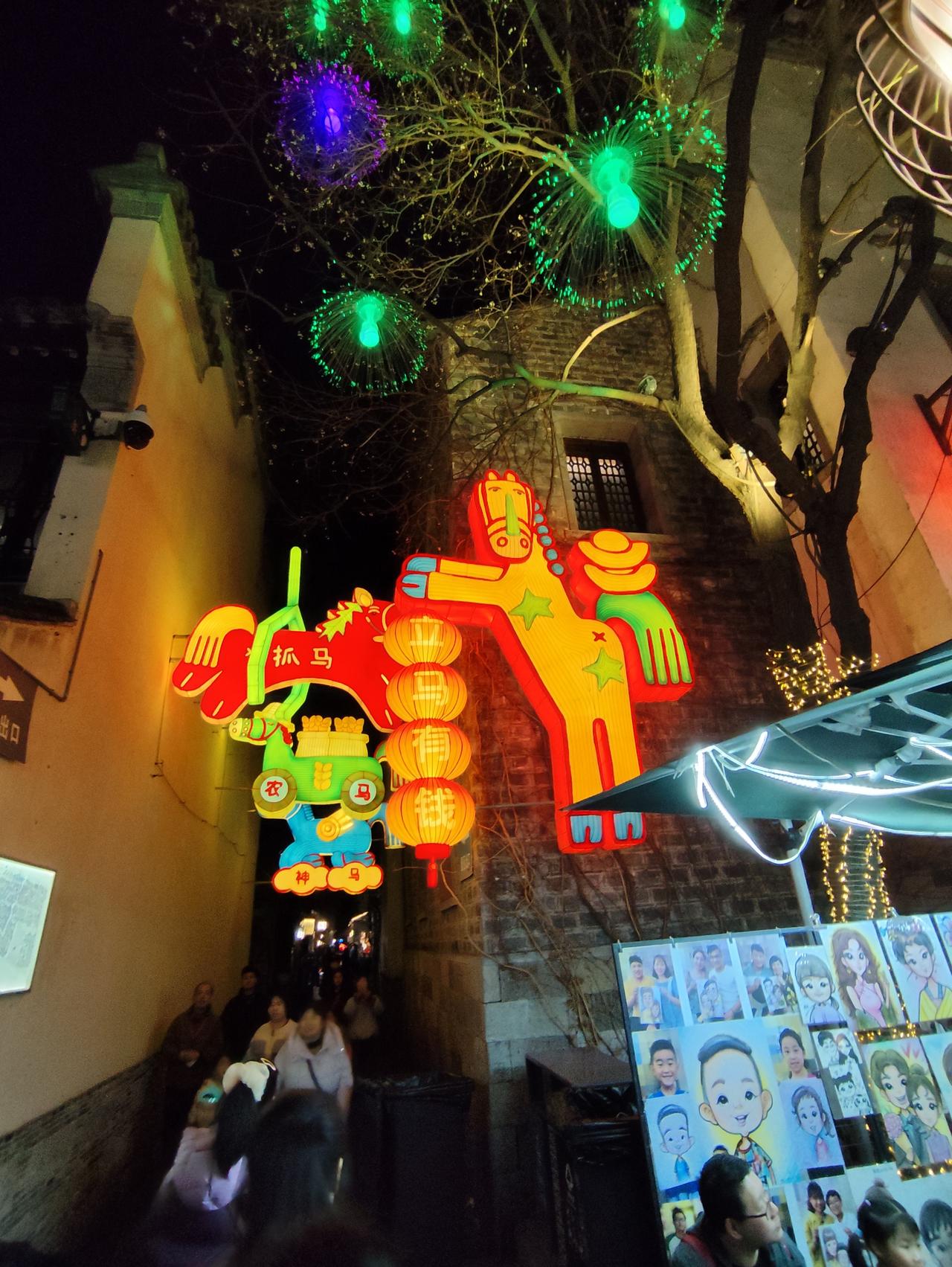 大年初四夜晚的老门东,彩灯飘飘,人潮涌动,第一次感受到这过年的盛世,以前从来没有过在人多的时候去老门东,或夫子庙,这次的大年初四,亲戚请吃饭在老门东附近,所以晚饭后就去老门东逛一逛。我的天呐!人一步一步慢慢的挪着走。帽子叔叔搭起人墙,维持秩序,进了门要绕一圈才能出口,夜晚的彩灯星光耀眼,甚是好看,大南京赢麻了。