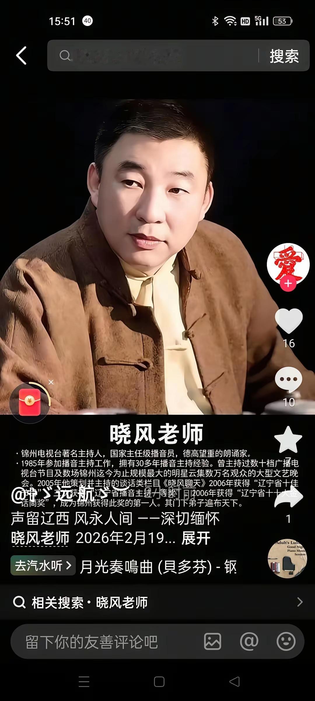 王铎:锦州著名播音员晓风突然离世 这人的声音非常好,很有穿透力。 前几天,2月19日,因脑癌,刚刚去世。太可惜了! 唉,青岛没有他这样的播音主持。