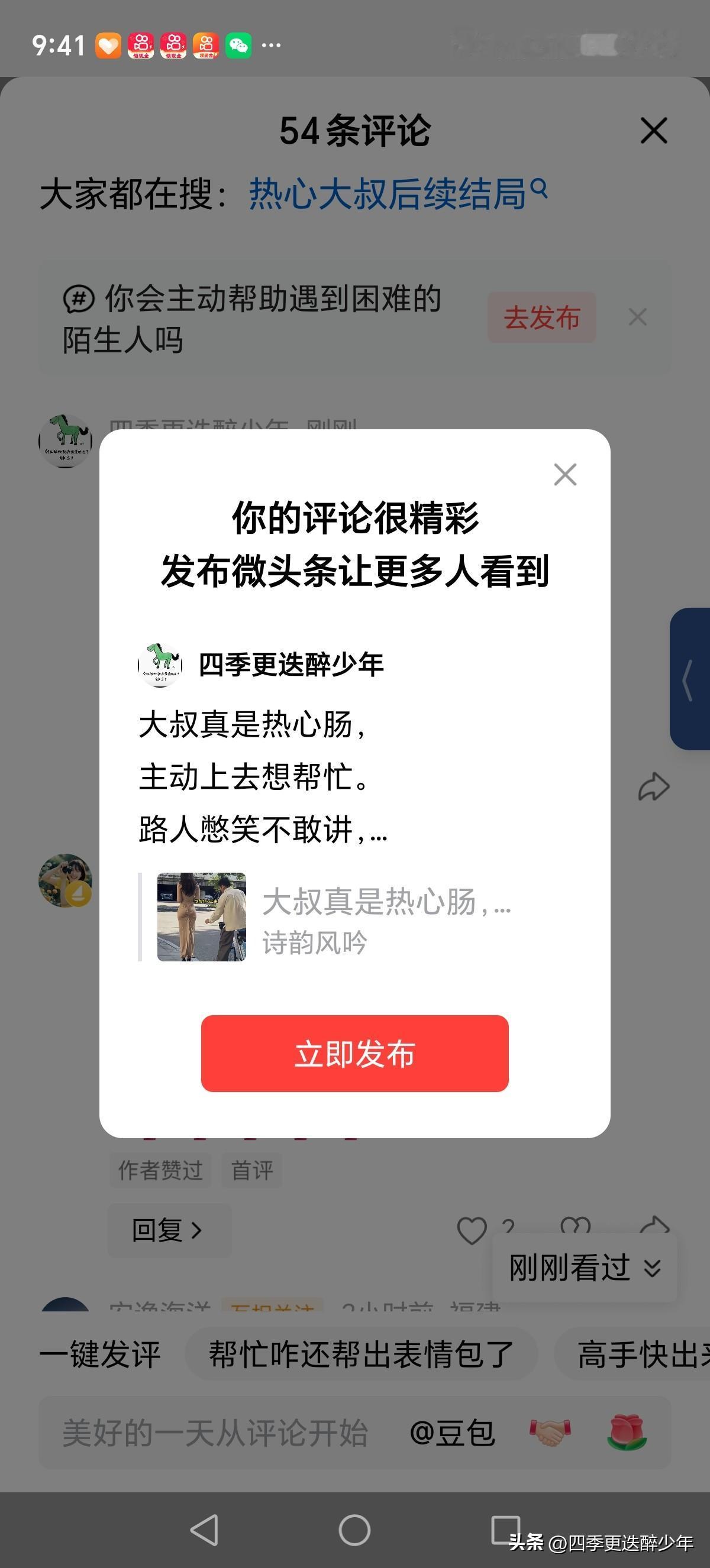 大叔真是热心肠, 主动上去想帮忙。 路人憋笑不敢讲, 不知这是新时尚。 惹来众人都观望, 窃窃私语不敢讲。 美女自认很漂亮, 大家都在乐观赏。 生活常有这样事, 不懂不要瞎帮忙。 惹来麻烦心受伤, 笑你落伍土模样。