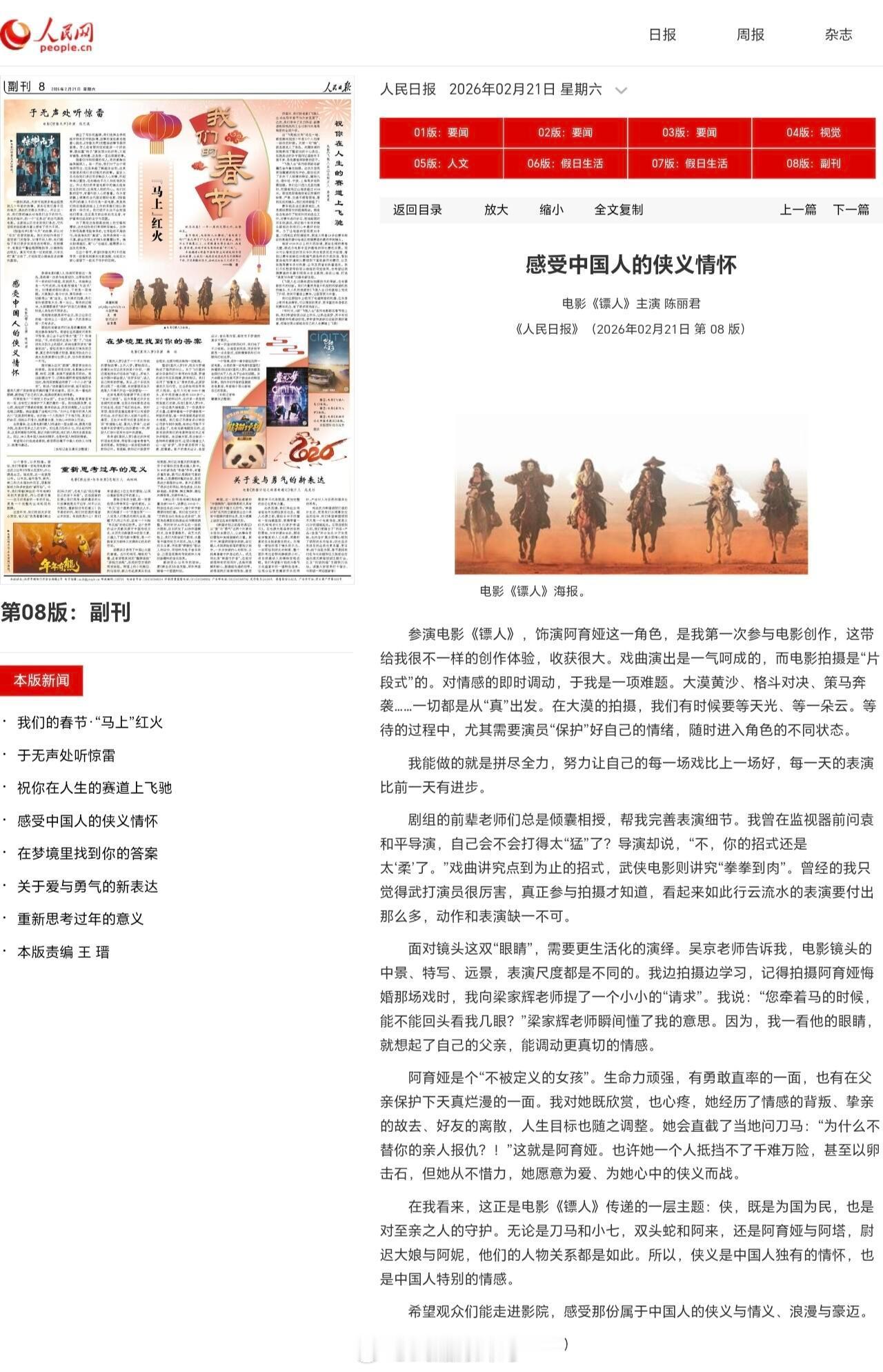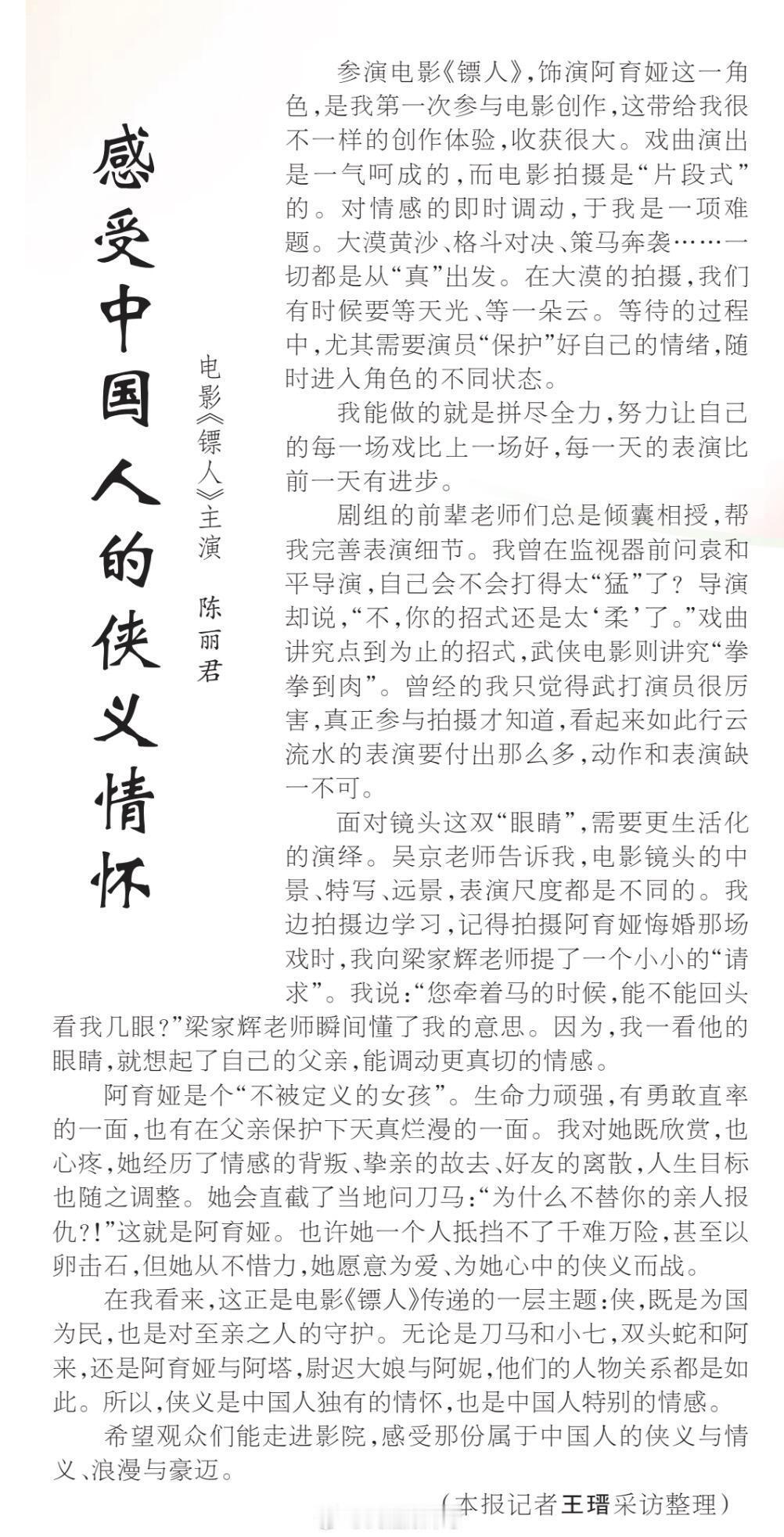 陈丽君采访登上《人民日报》——《感受中国人的侠义情怀》真是优秀的君君